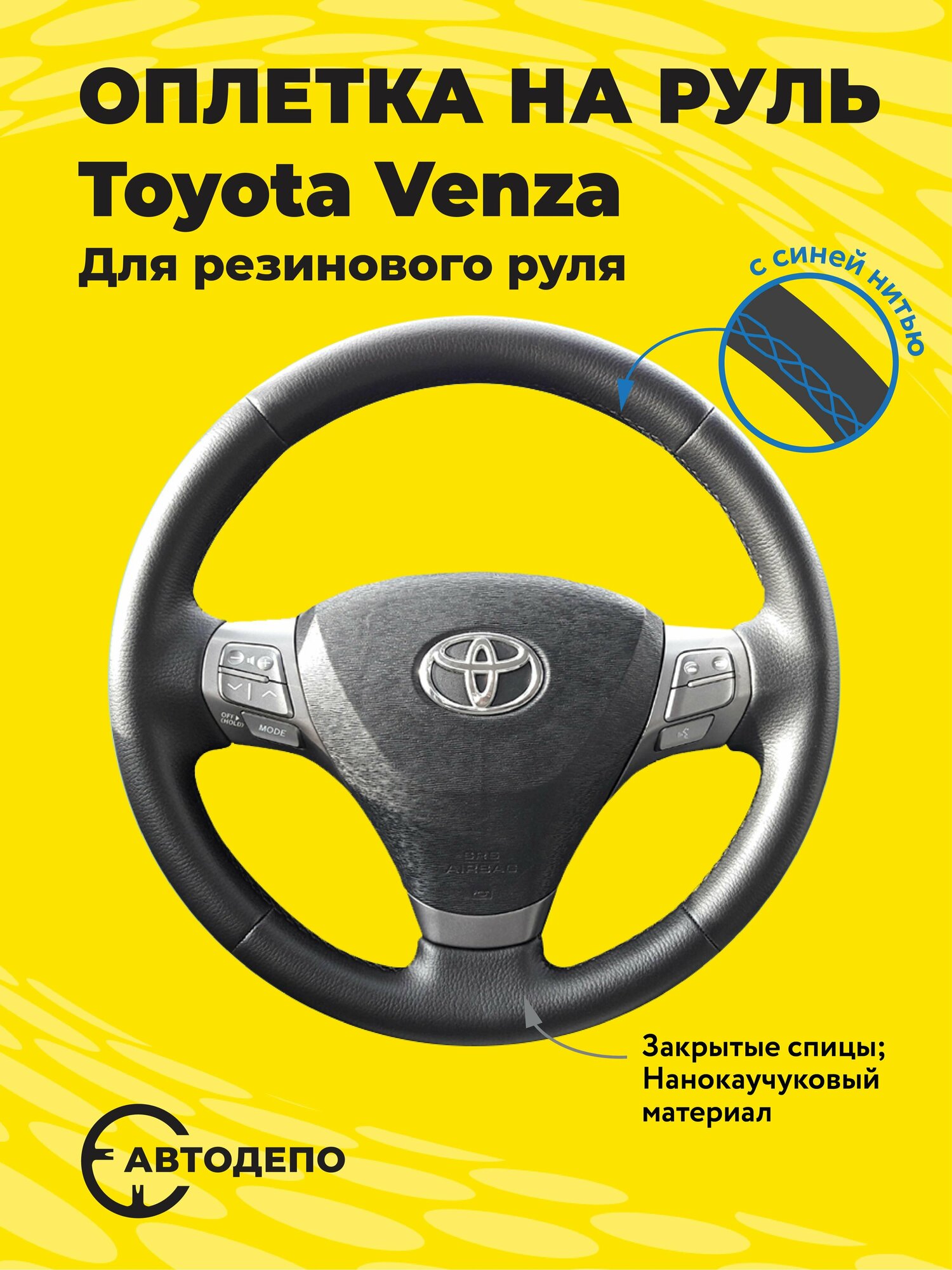 Отзывы на Оплетка на руль Toyota Venza для резинового руля, черная кожа с синим швом.