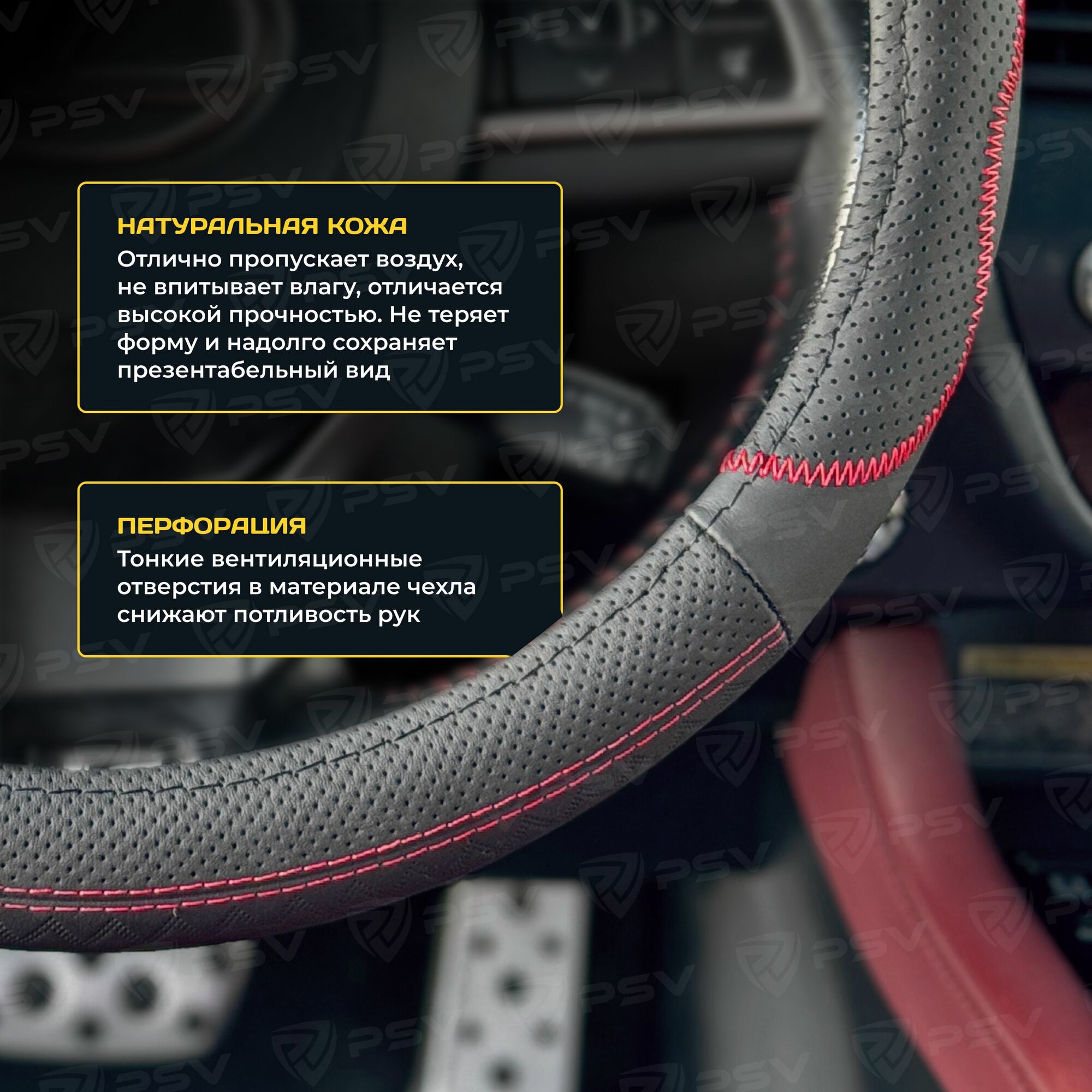 Отзывы на Чехол на руль оплетка из натуральной кожи PSV KORONA (Черный/Отстрочка красная), размер M 37-39 см