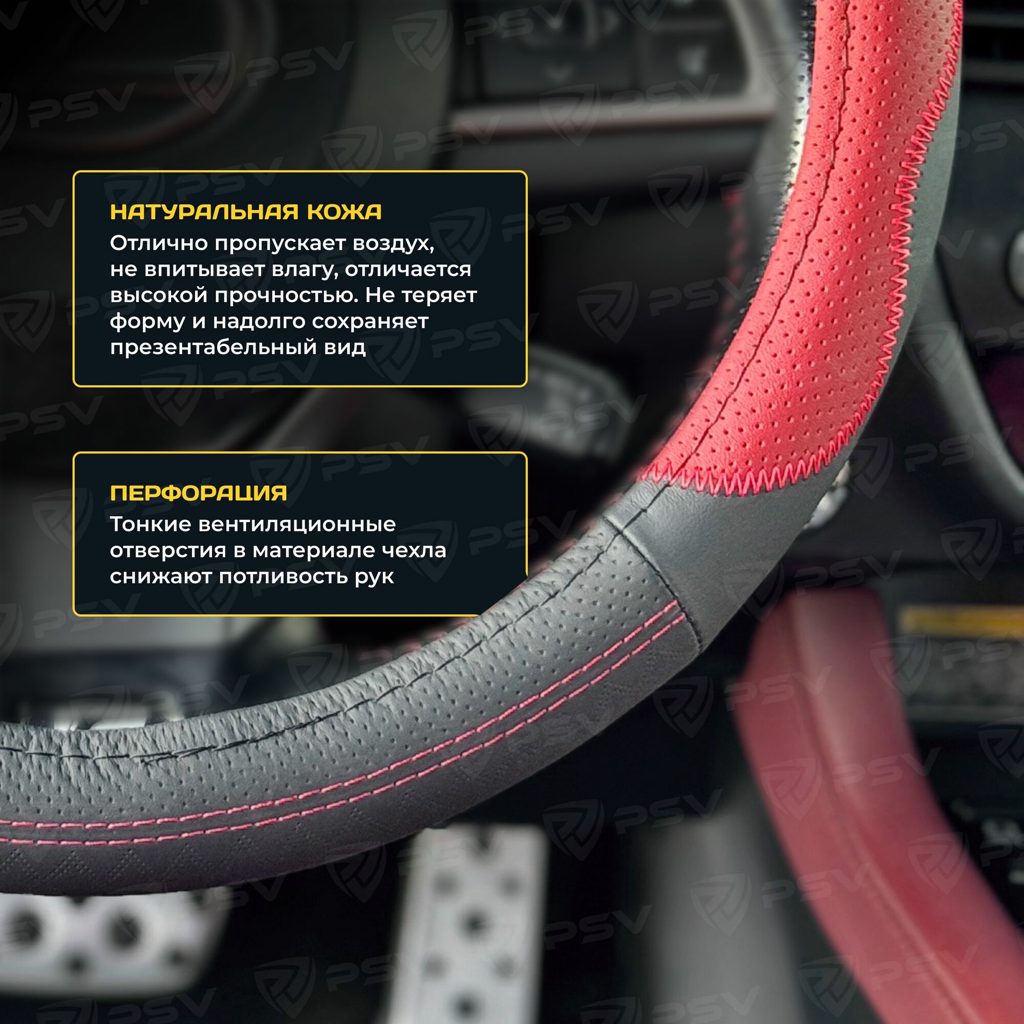 Отзывы на Чехол на руль оплетка из натуральной кожи PSV KORONA (Черно-Красный), размер M 37-39 см