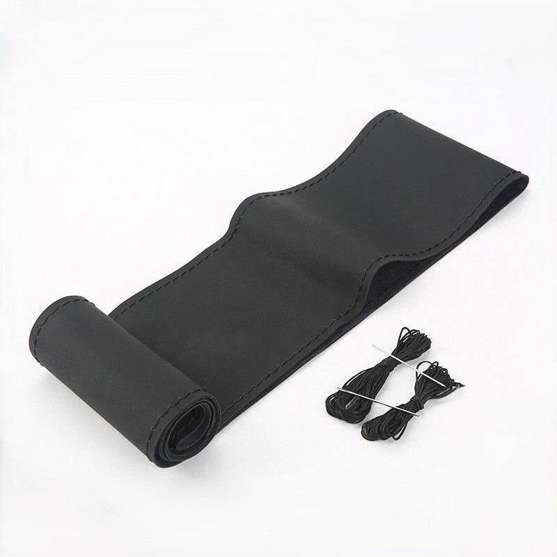 10 цен на Универсальная оплетка 37 см из натуральной гладкой кожи на руль со шнуровкой. Черная с нитью