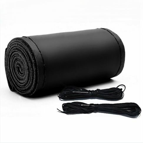 Отзывы на Универсальная оплетка 37 см из натуральной гладкой кожи на руль со шнуровкой. Черная с нитью