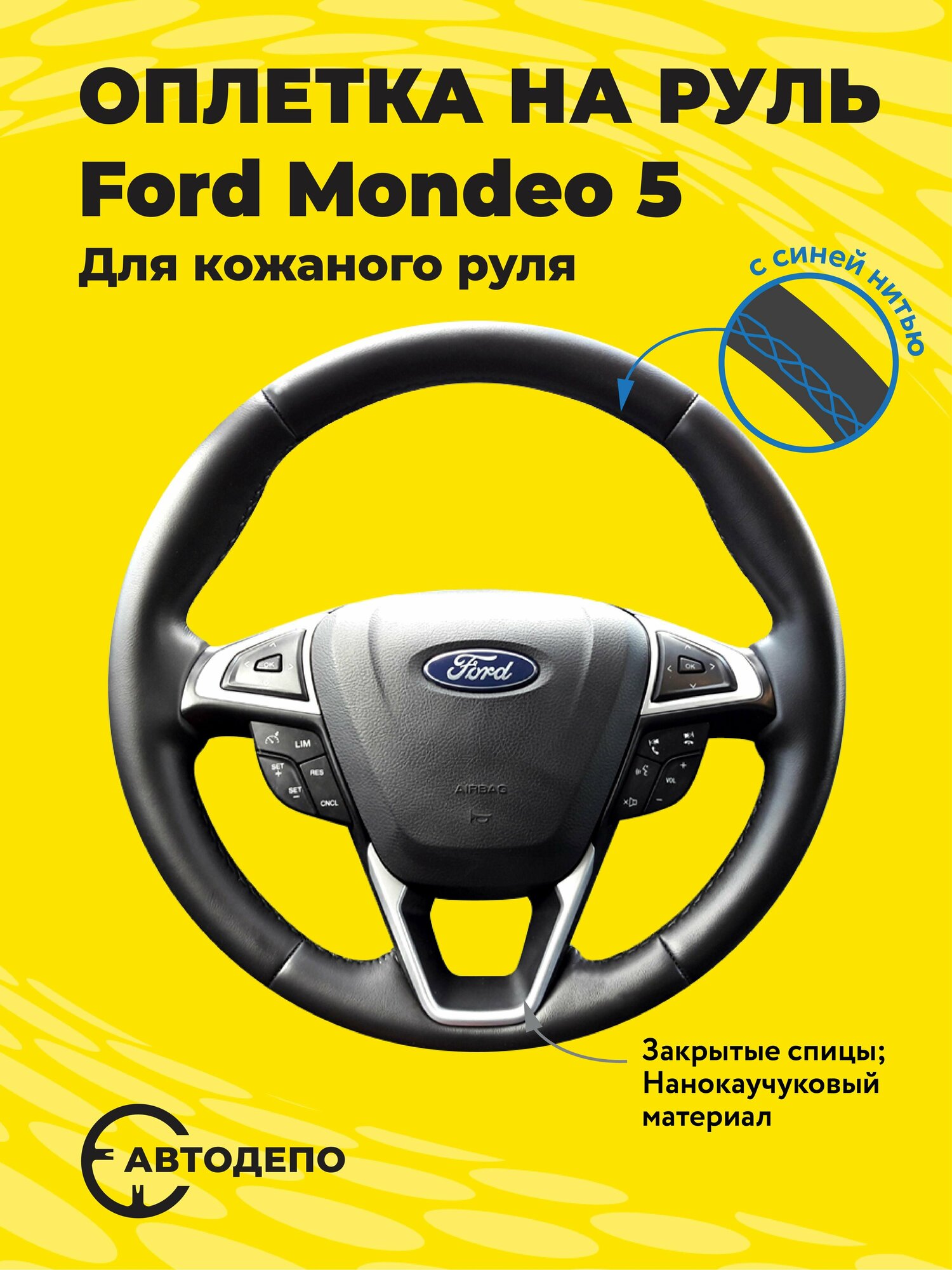 Оплетка на руль Ford Mondeo 5 для кожаного руля, черная кожа с синим швом. информация: