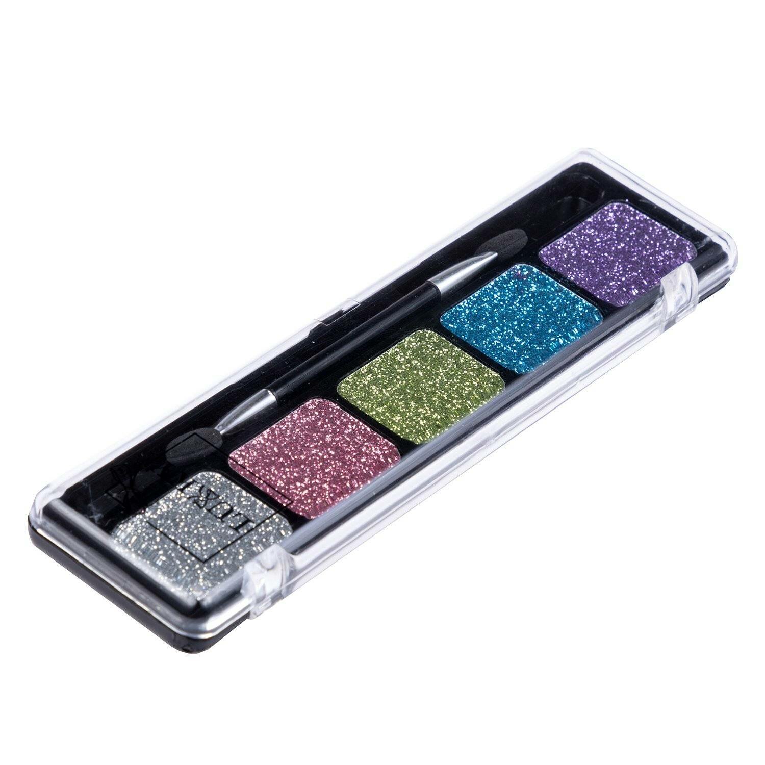 Lukky гель-тени для век с блёстками яркие цвета: фиолетовый, бирюзовый, золотистый, бордовый, серебристый, 4,5 г, блистер 22х10 см