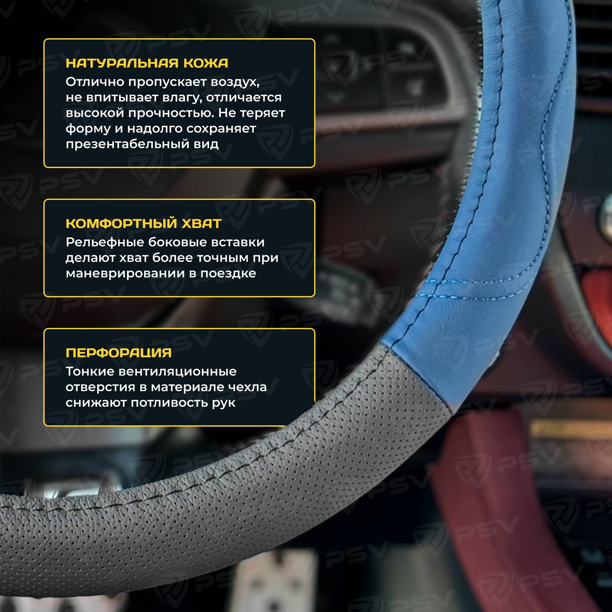 Отзывы на Чехол на руль оплетка из натуральной кожи PSV GALANT (Черно-Синий), размер M 37-39 см