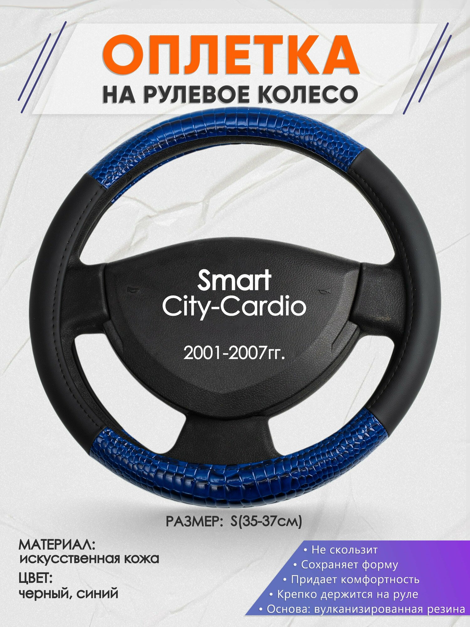 Оплетка на руль для Smart City-Cardio(Смарт Сити) 2001-2007, S(35-37см), Искусственная кожа 01 1 188 ₽