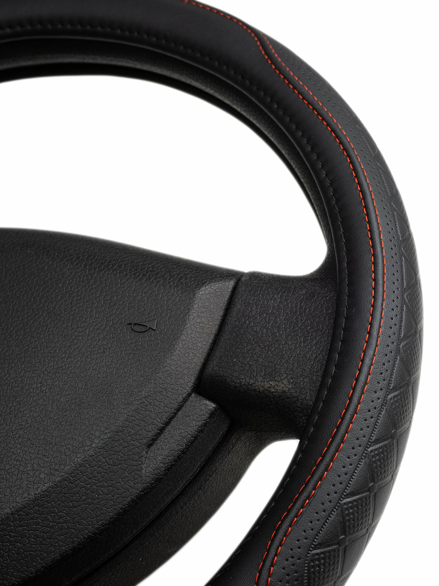 Оплетка CAMC AH3251-2 / Чехол на руль экокожа черный / бордовый (каркасный) 44-45 см