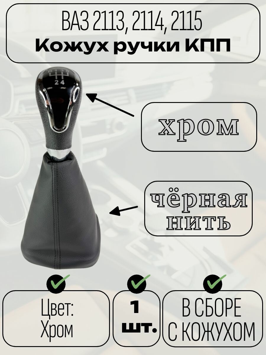 Ручка КПП с чехлом в стиле Веста для ВАЗ 2113, 2114, 2115 хром информация: