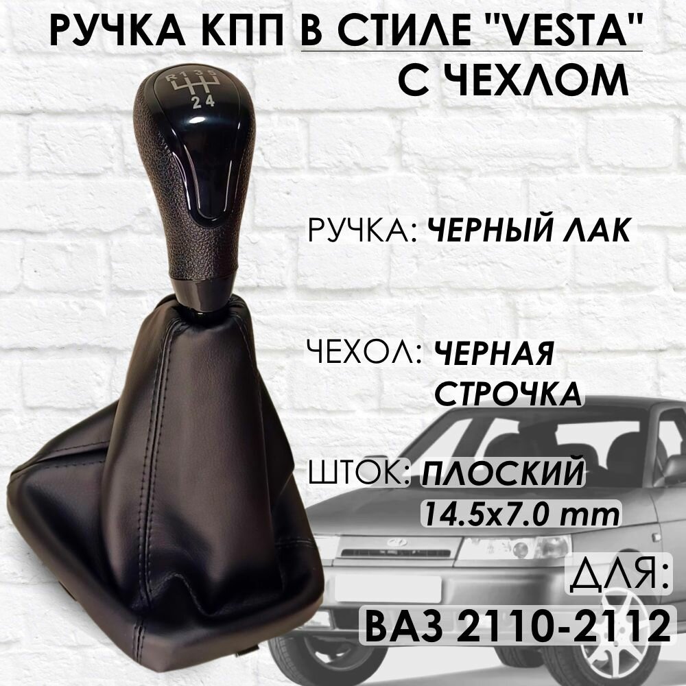 10 цен на Ручка КПП с чехлом ВАЗ 2110-2112 "Веста стиль" (Черный лак/черная строчка)
