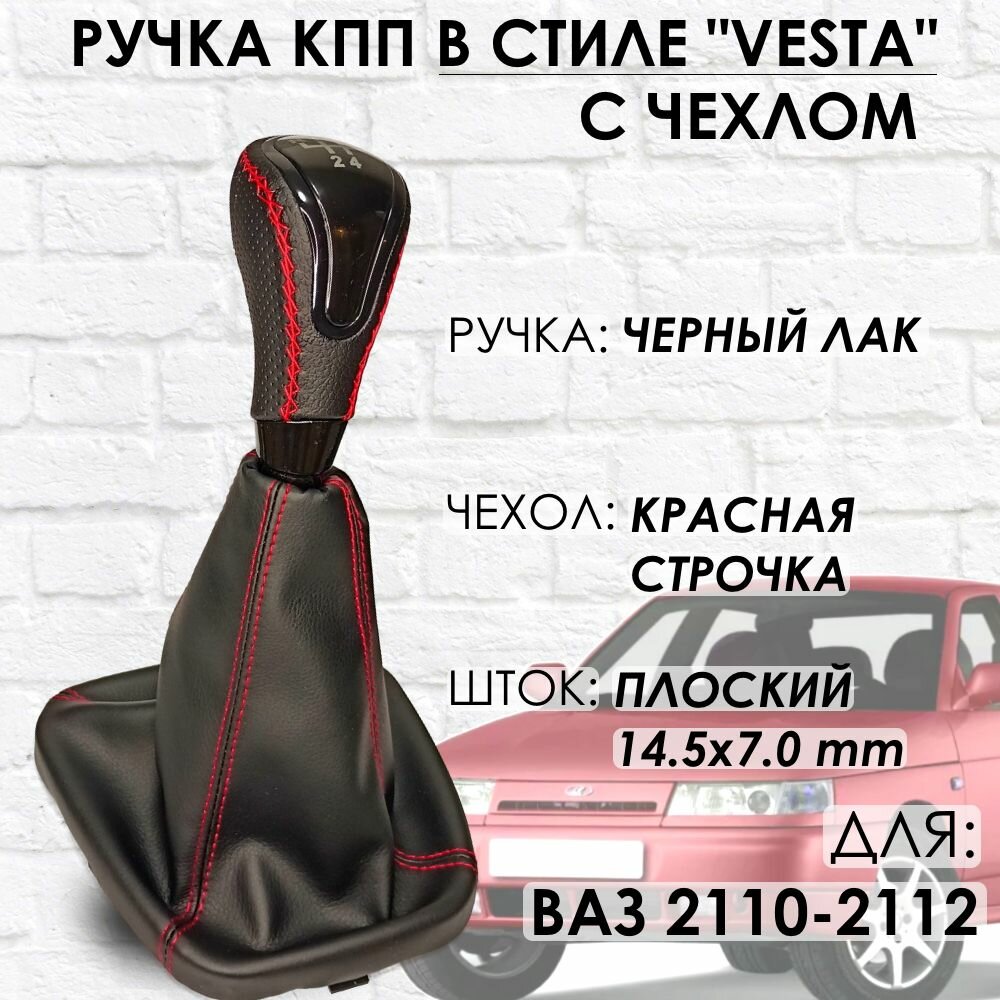 Кожаная Ручка КПП с чехлом ВАЗ 2110-2112 "Веста стиль" (Черный лак/красная строчка) информация: