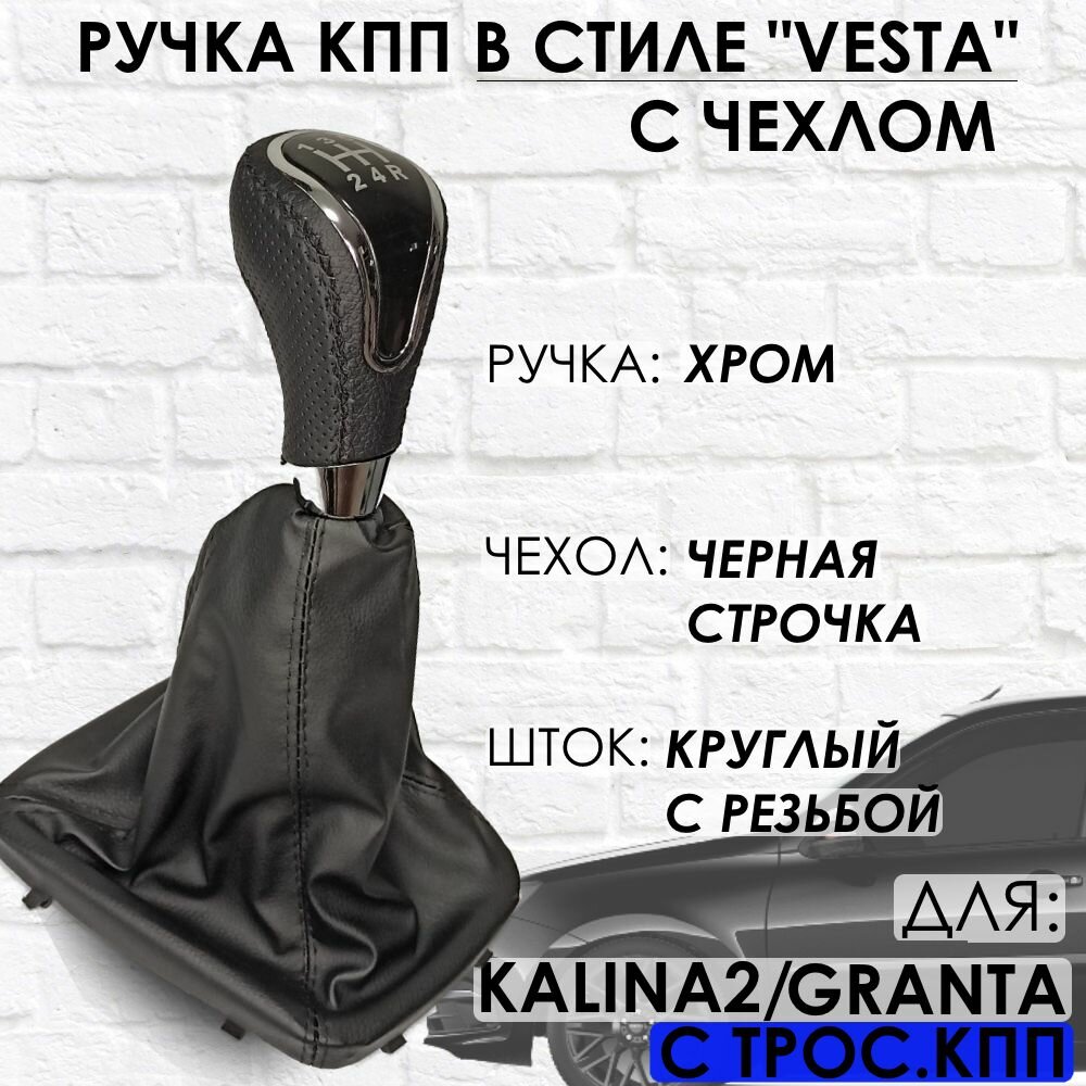 Отзывы на Кожаная Ручка КПП Granta/Kalina 2/Datsun, c 2013г. в, "Веста стиль", (Хром/черная строчка)