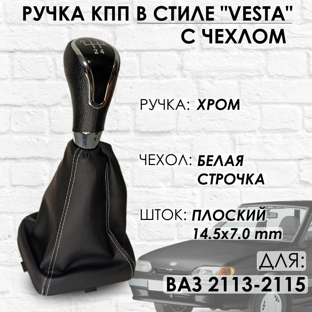 Ручка КПП с чехлом ВАЗ 2113, 2114, 2115 "Веста стиль" (Хром/белая строчка) информация: