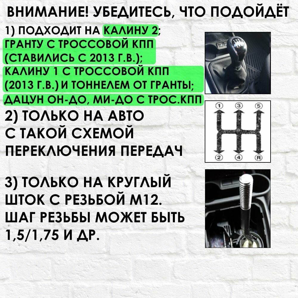 Ручка КПП с чехлом для Lada Granta С кулисой до 2013 г. в. "Веста стиль" (Черный лак/черная строчка)