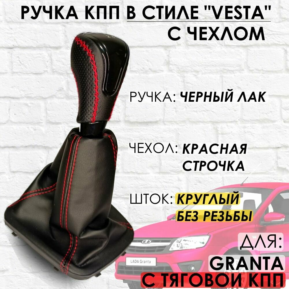 Кожаная Ручка КПП с чехлом Granta С кулисой до 2013 г. в. "Веста стиль" (Черный лак/красная строчка) информация: