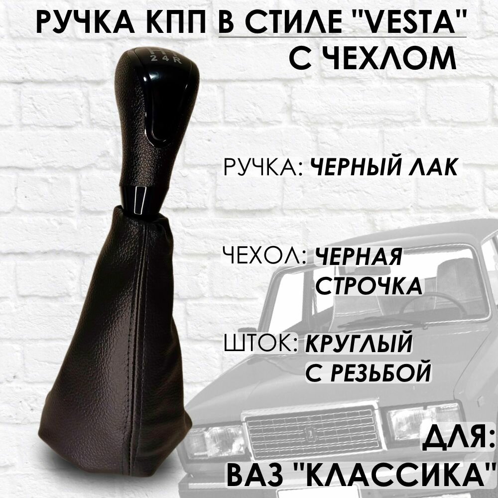 Ручка КПП с чехлом ВАЗ 2101-2107 "Веста стиль" (Черный лак/черная строчка) информация: