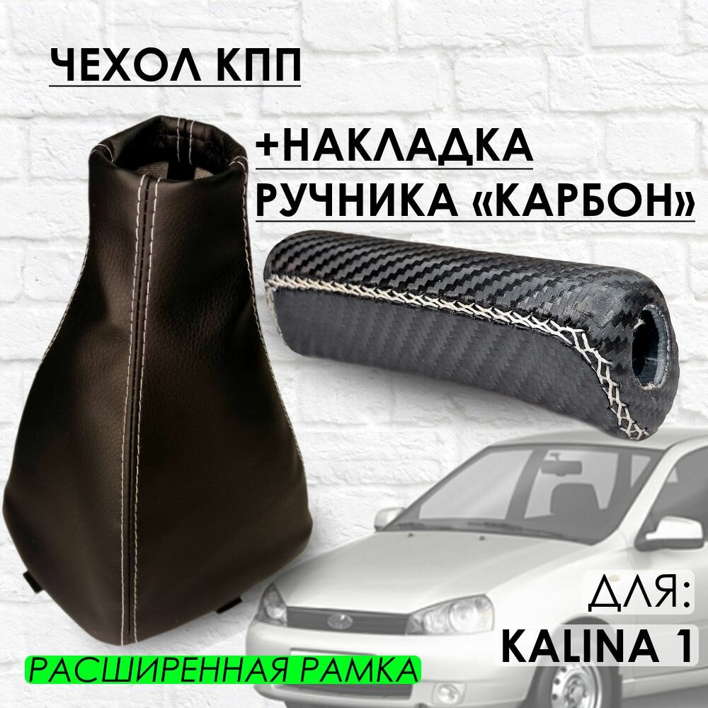 Ручка ручника "Карбон" и Чехол КПП (Расширенная рамка) , Kalina I, белая строчка информация: