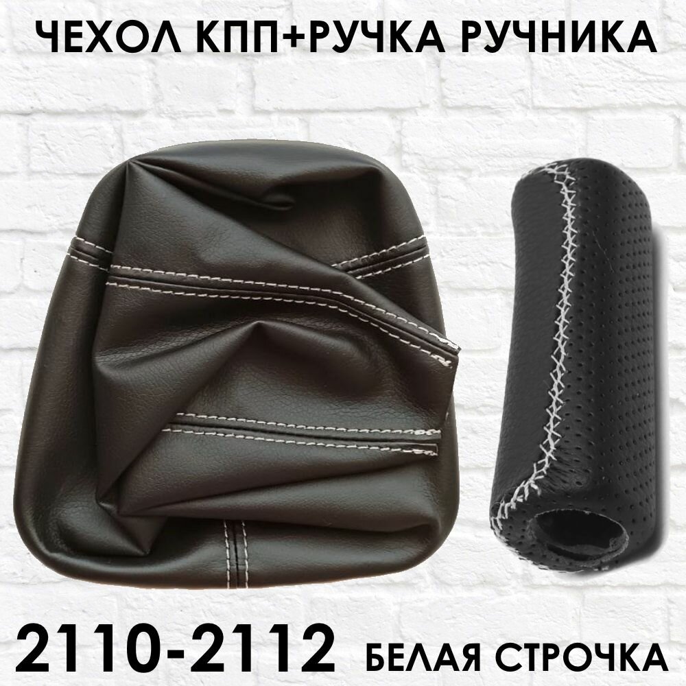 Чехол КПП и Ручка ручника ВАЗ 2110 2111 2112, белая строчка информация: