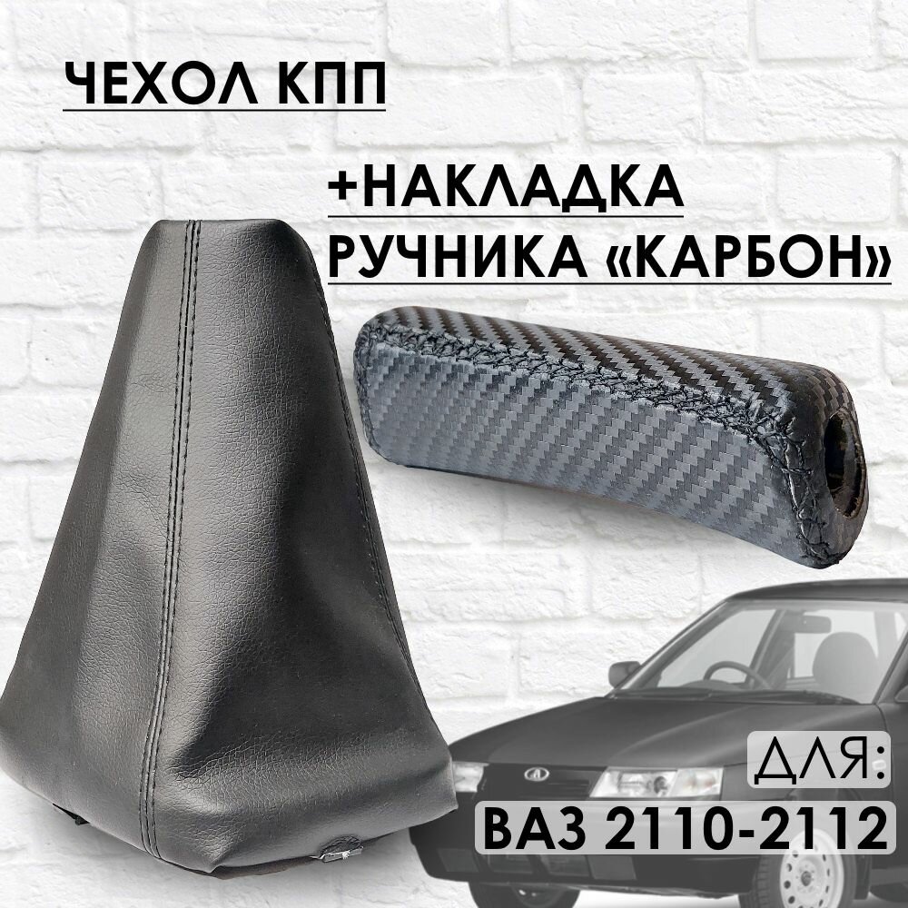 Чехол КПП и Накладка ручника "Карбон" ВАЗ 2110 2111 2112, черная строчка информация: