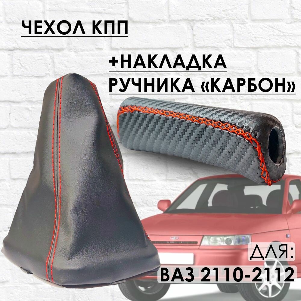 10 цен на Чехол КПП и Накладка ручника "Карбон" ВАЗ 2110 2111 2112, красная строчка
