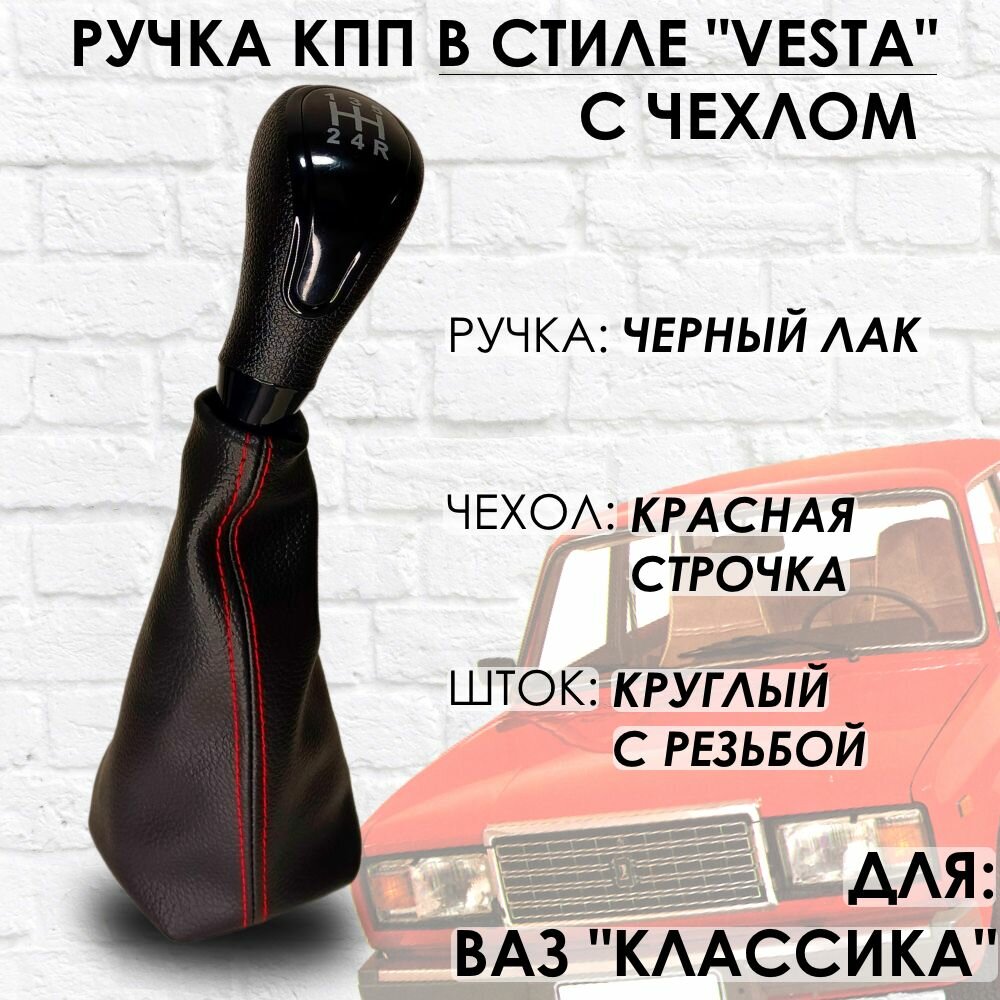 Ручка КПП с чехлом ВАЗ 2101-2107 "Веста стиль" (Черный лак/красная строчка) информация: