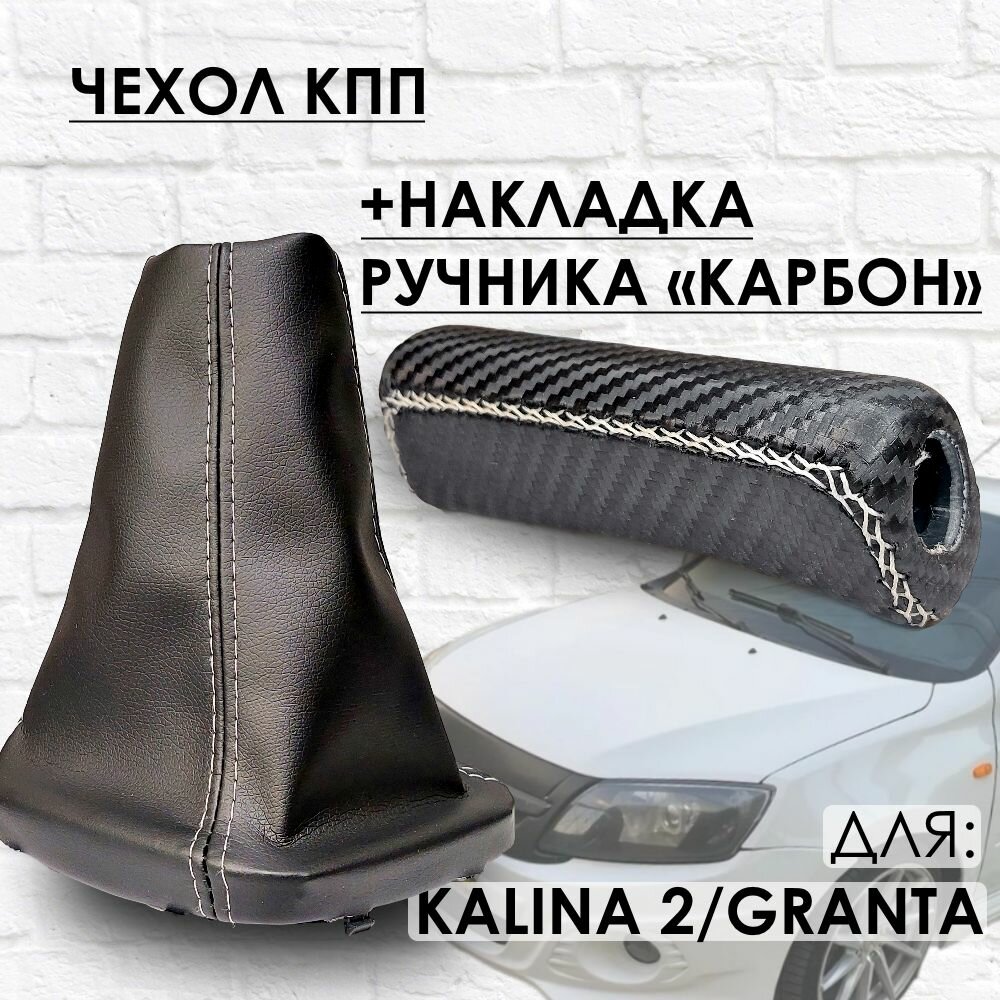 10 цен на Чехол КПП и Накладка ручника "Карбон" Гранта, Калина 2, Датсун, белая строчка