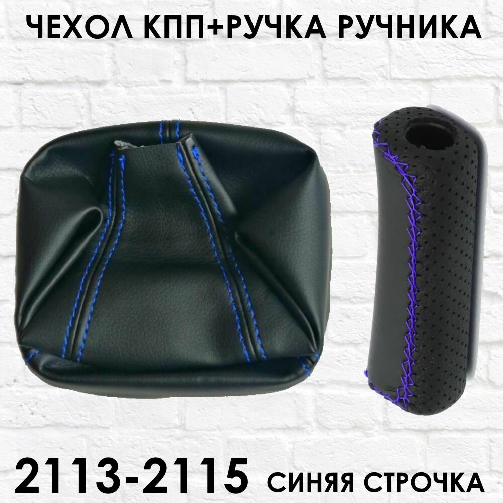 Чехол КПП и Ручка ручника ВАЗ 2113 2114 2115, синяя строчка