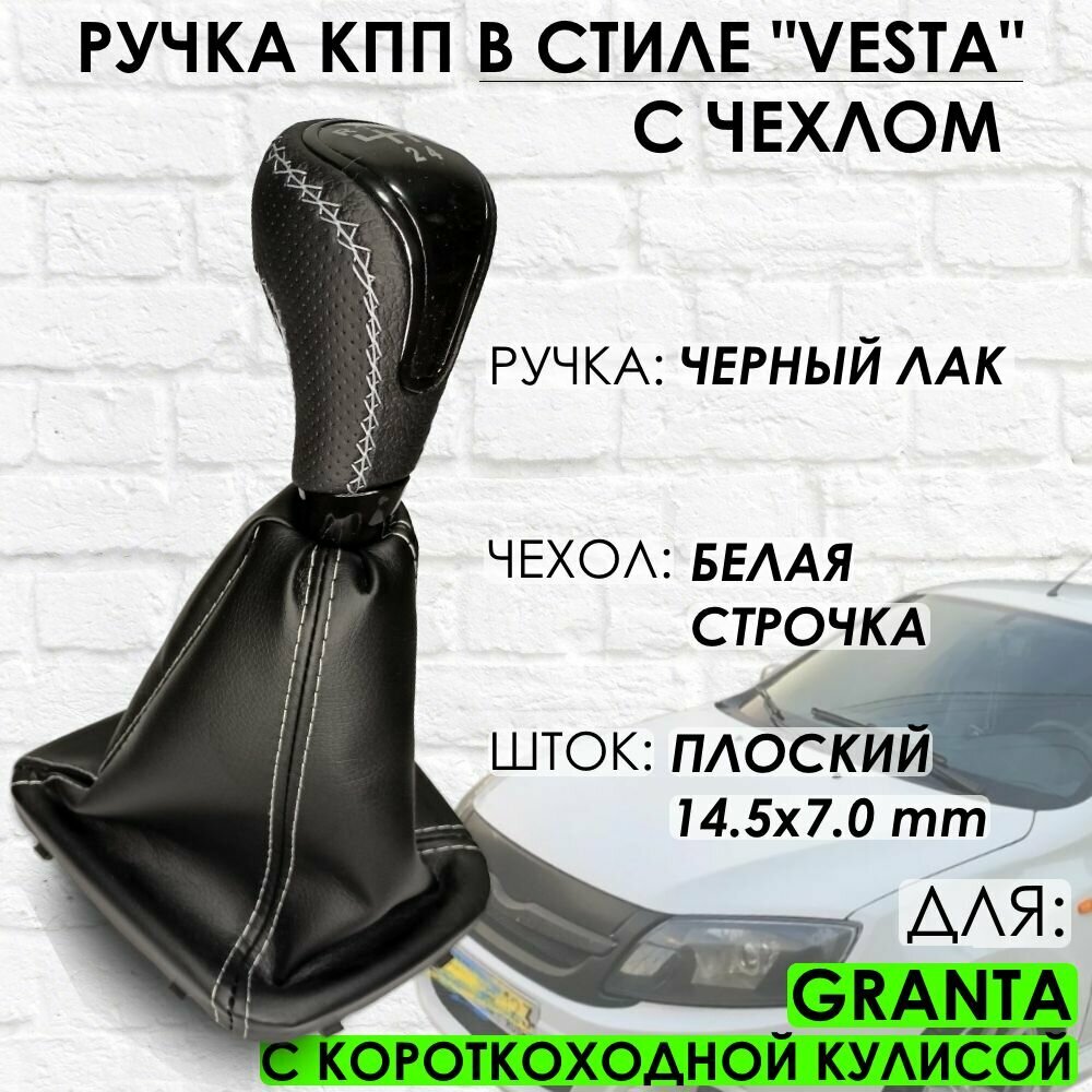 Кожаная Ручка КПП Granta С короткоходной кулисой "Веста стиль" (Черный лак/белая строчка) информация: