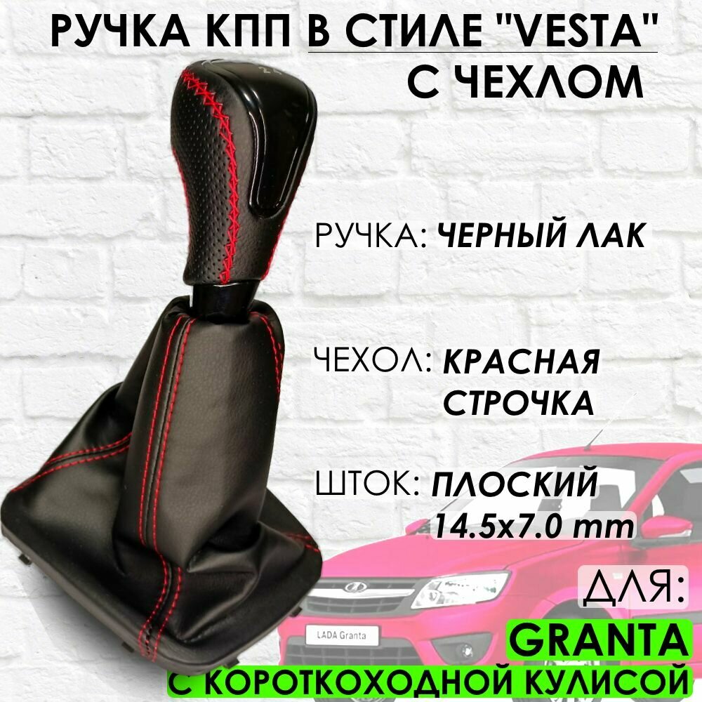 Отзывы на Кожаная Ручка КПП Granta С короткоходной кулисой "Веста стиль" (Черный лак/красная строчка)