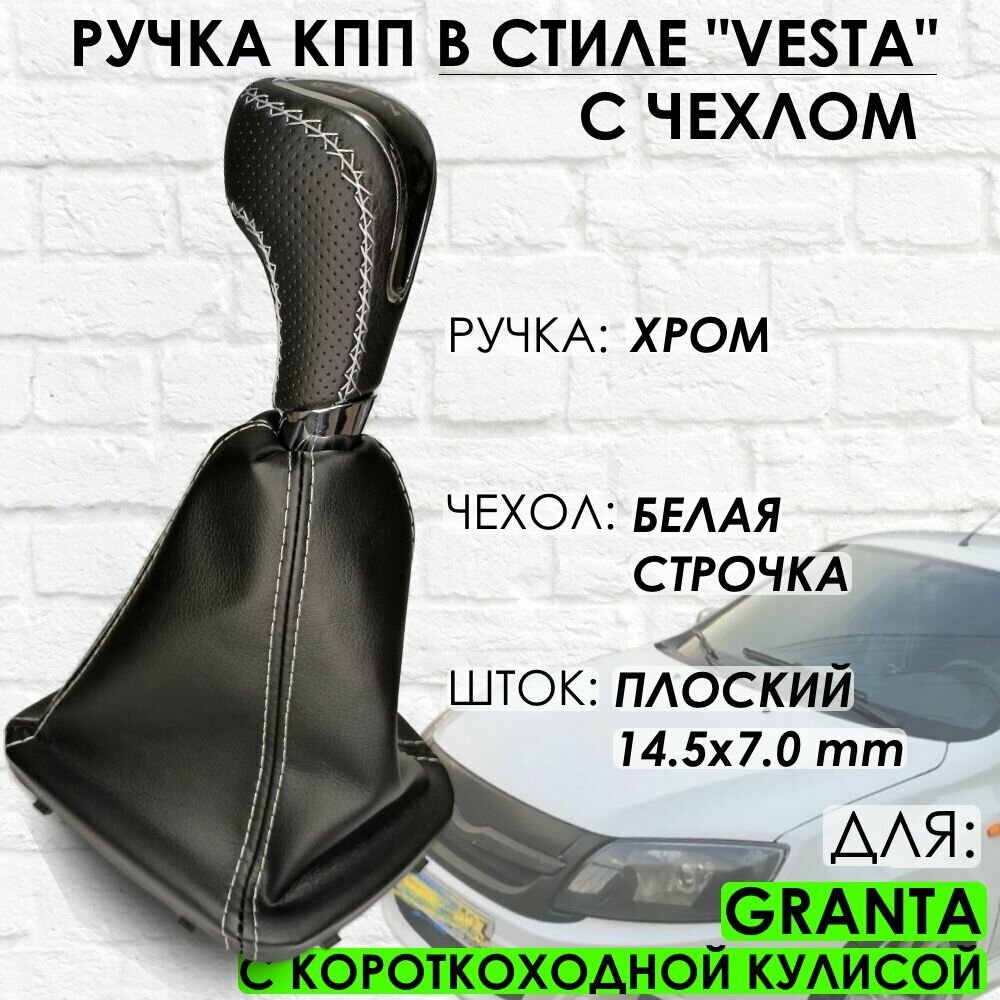 Кожаная Ручка КПП Granta С короткоходной кулисой "Веста стиль" (Хром/белая строчка) информация: