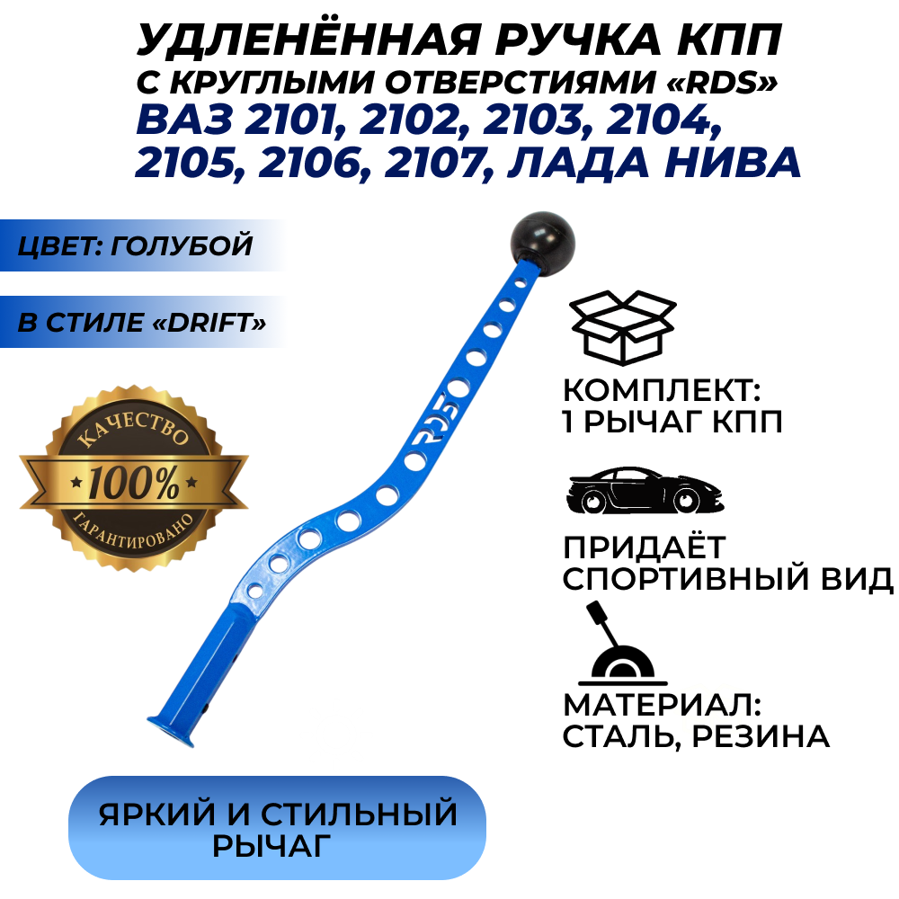 Отзывы на Ручка рычаг КПП удлиненный голубой с круглыми отверстиями "RDS" ВАЗ 2101-2107 Лада Нива 4х4