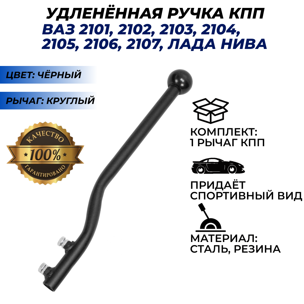 Ручка рычаг КПП удлиненный черный 41 см круглый ВАЗ 2101-2107 Лада Нива 4х4 информация: