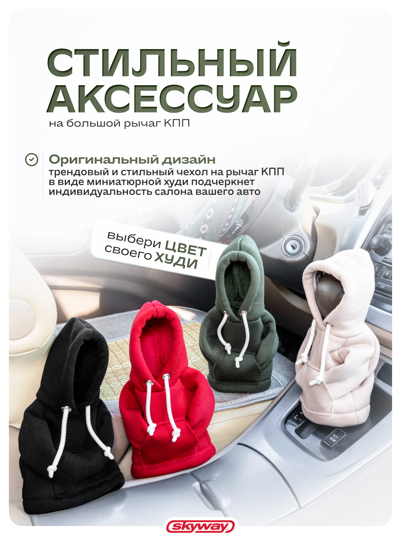 Отзывы на Чехол SKYWAY "Худи", хаки, для рычага КПП, автоматическая КПП, футер, S06201021