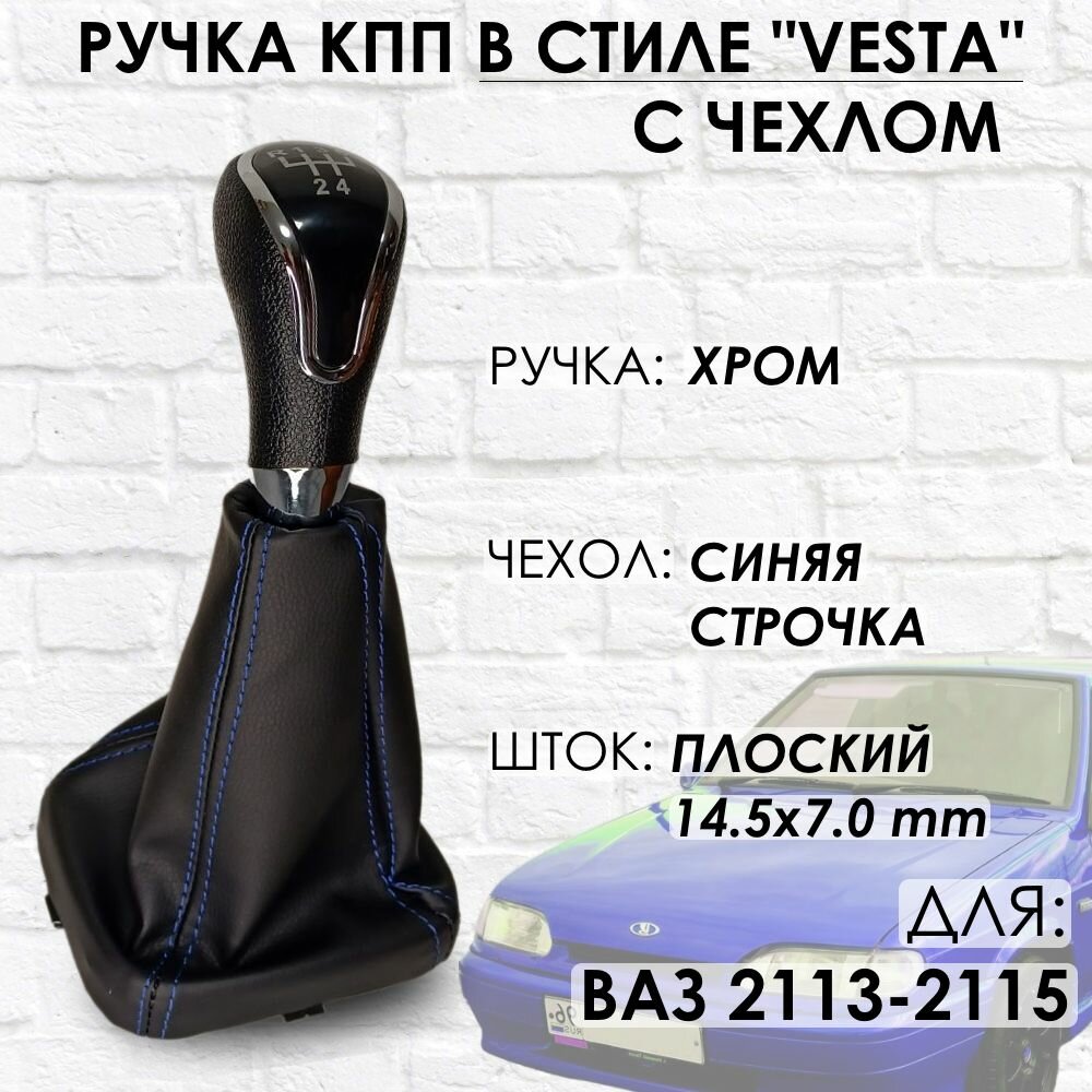 Ручка КПП с чехлом ВАЗ 2113, 2114, 2115 "Веста стиль" (Хром/синяя строчка) информация: