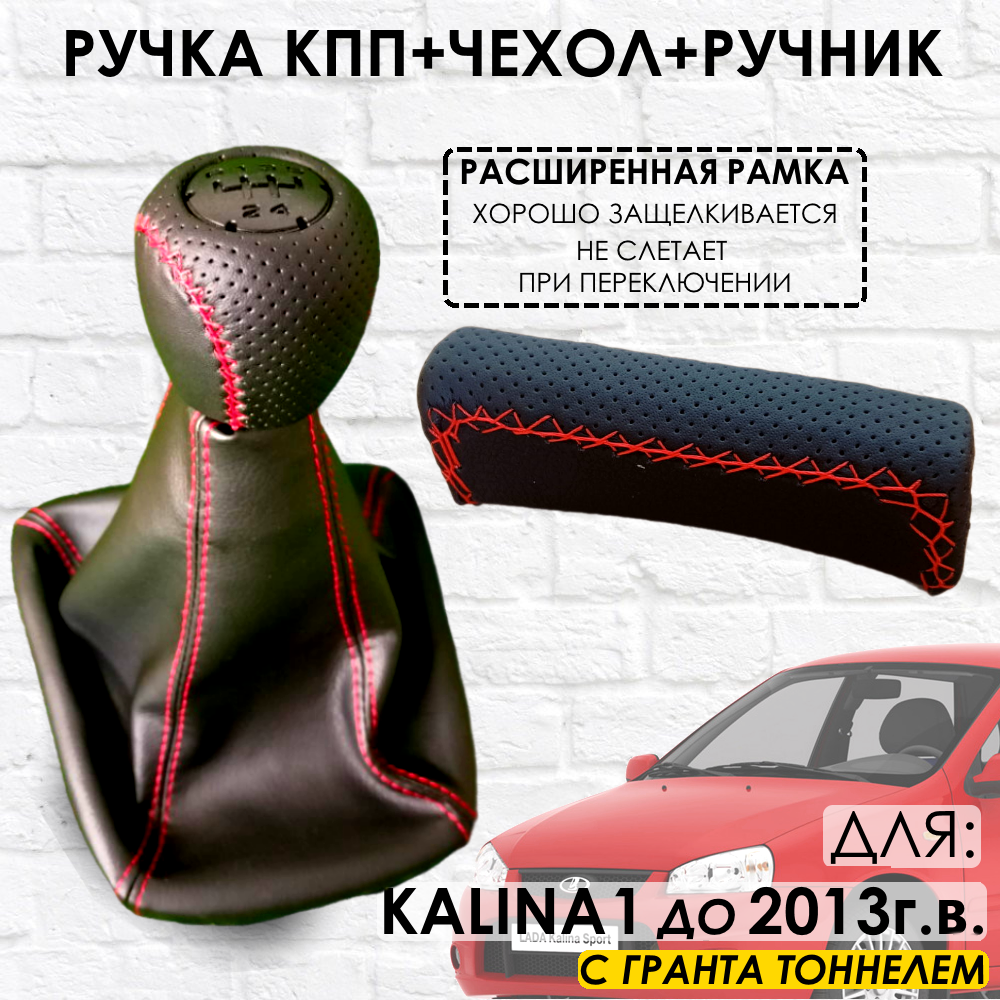 Ручка ручника и Чехол КПП (Расширенная рамка) Kalina I, красная строчка