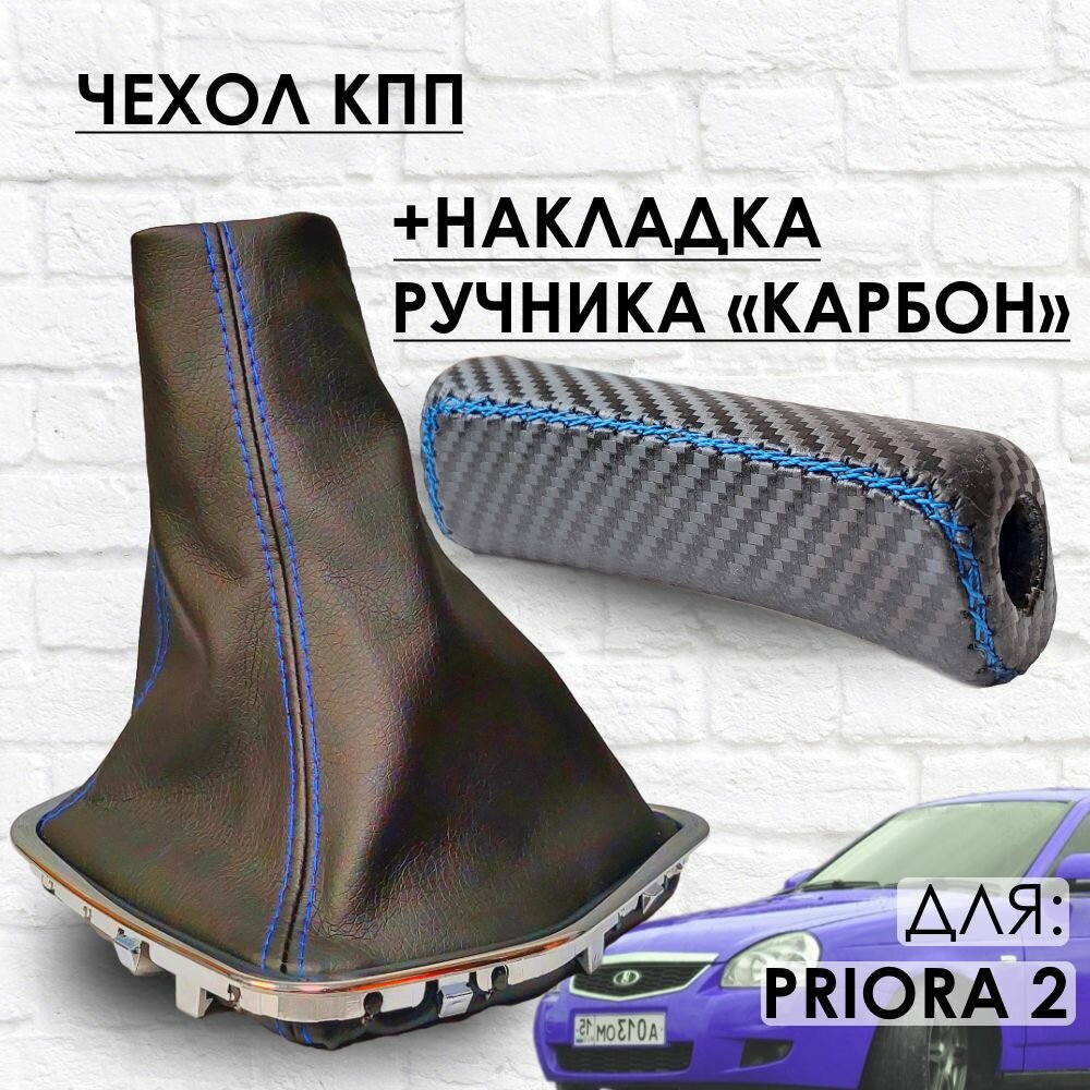 10 цен на Чехол КПП и Накладка ручника "Карбон", Приора 2 синяя строчка