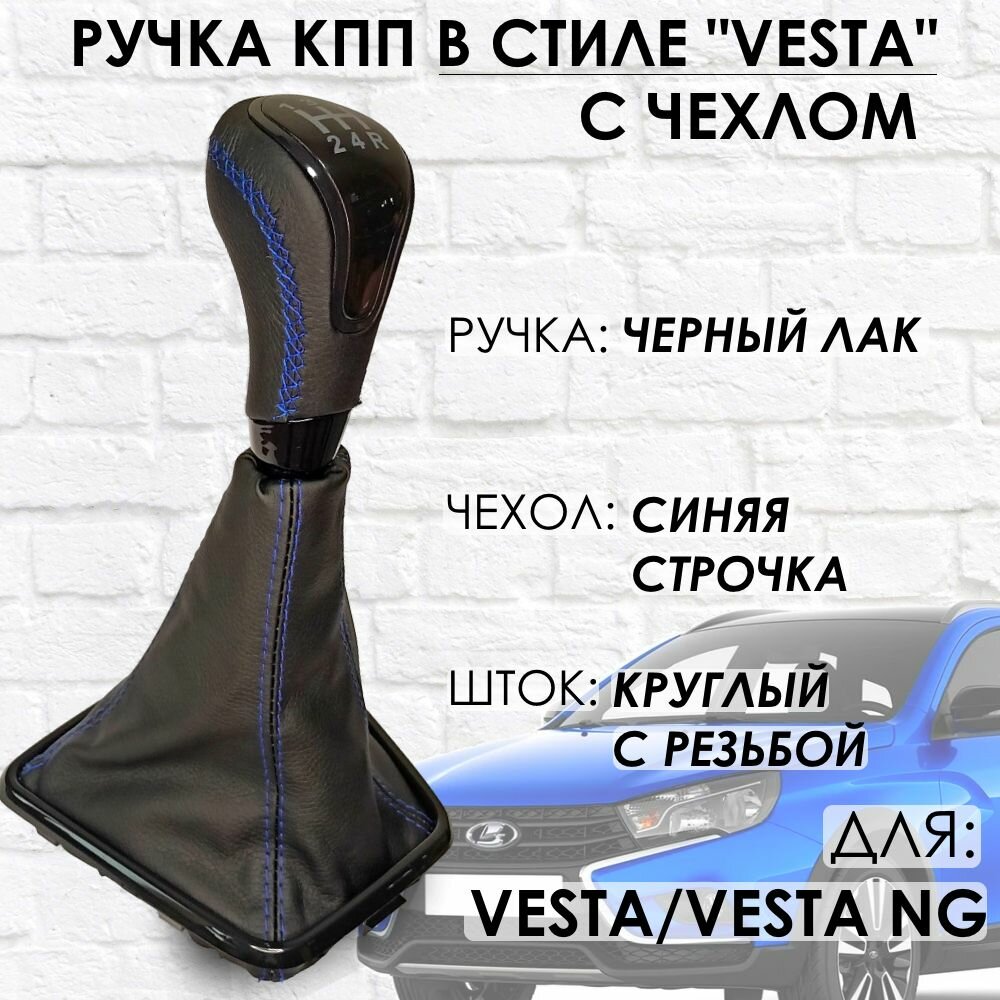 Ручка КПП с чехлом для Granta С короткоходной кулисой "Веста стиль" (Хром/синяя строчка)