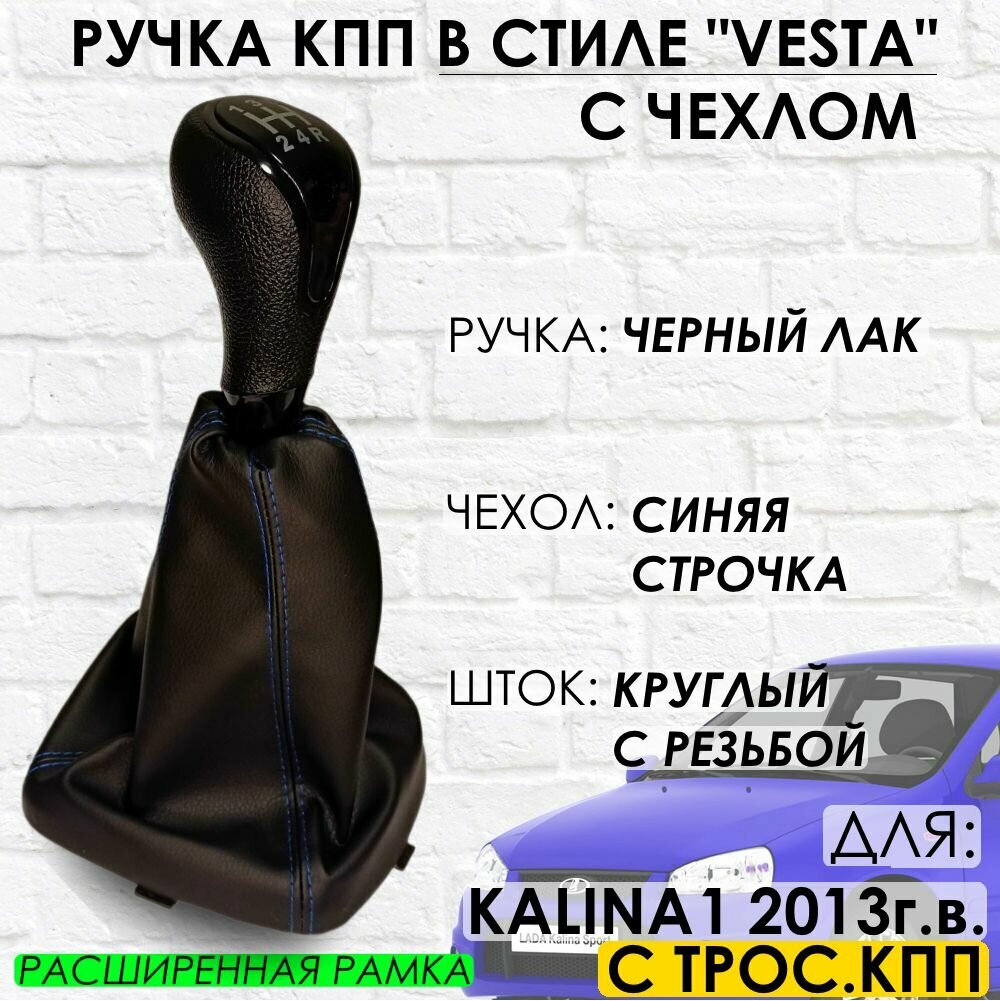 Ручка КПП с чехлом, Kalina 1 С тросовой КПП 2013 г. в, "Веста стиль" (Черный лак/синяя кожа) информация: