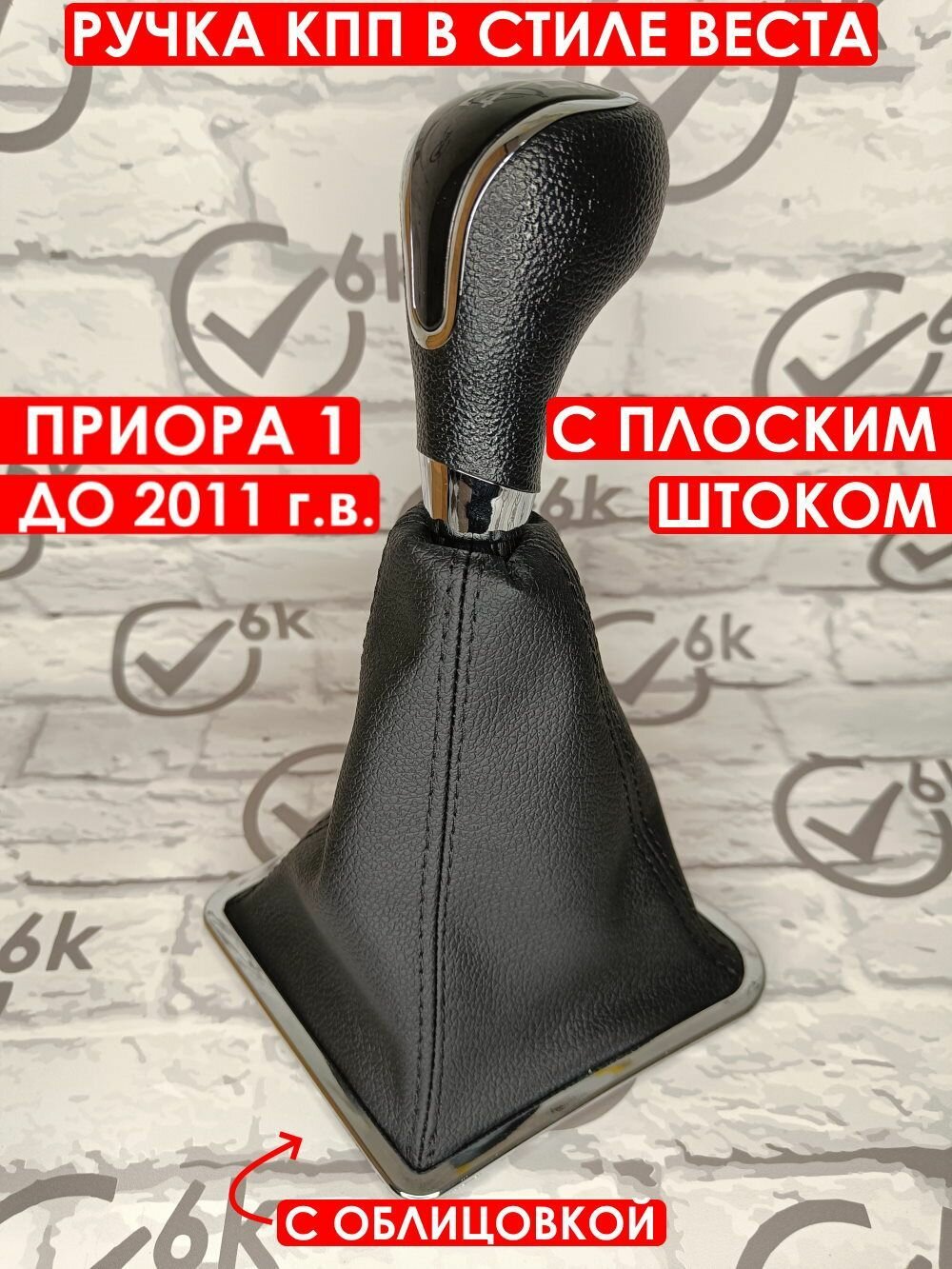 Ручка КПП PRIORA 1 С плоским штоком, "Веста стиль", с облицовкой (Хром/черная строчка) информация: