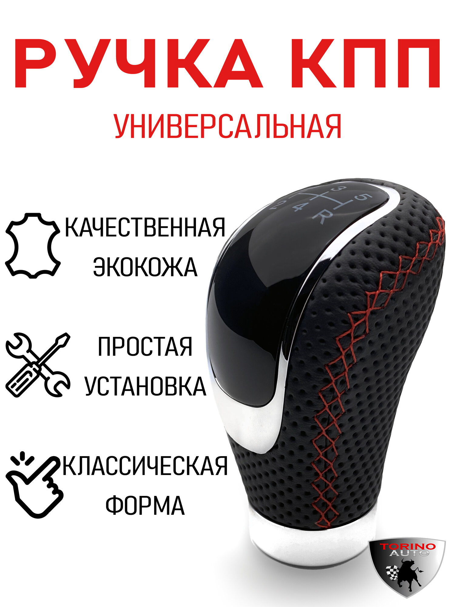 Ручка на механическую КПП черная перфорированная экокожа с красной нитью информация: