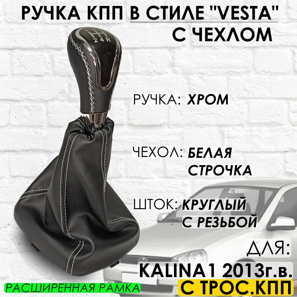 Кожаная Ручка КПП Kalina 1 С тросовой КПП 2013 г. в, "Веста стиль" (Хром/белая строчка) информация: