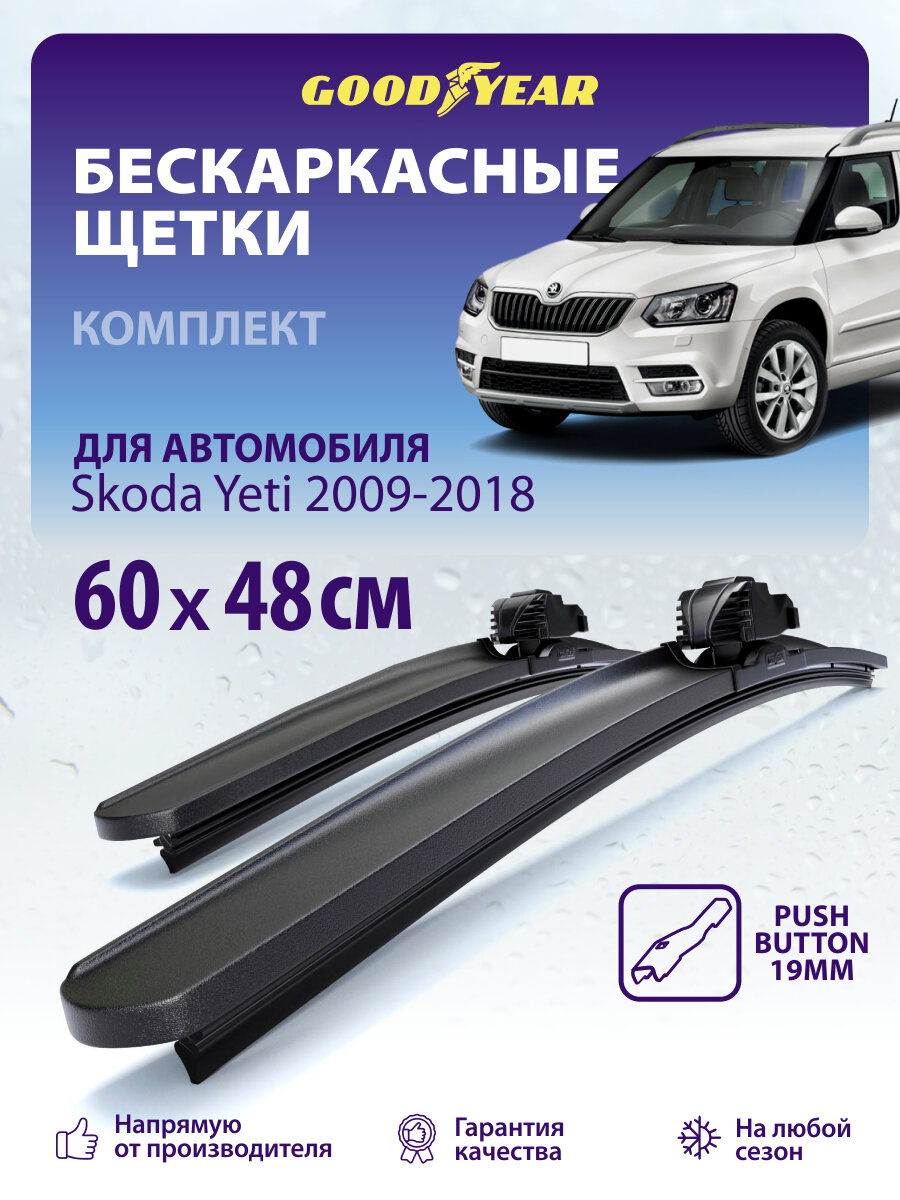 Дворники Skoda Yeti 2009-2018 г. (Шкода Йети), Щетки стеклоочистителя бескаркасные 600 480 информация: