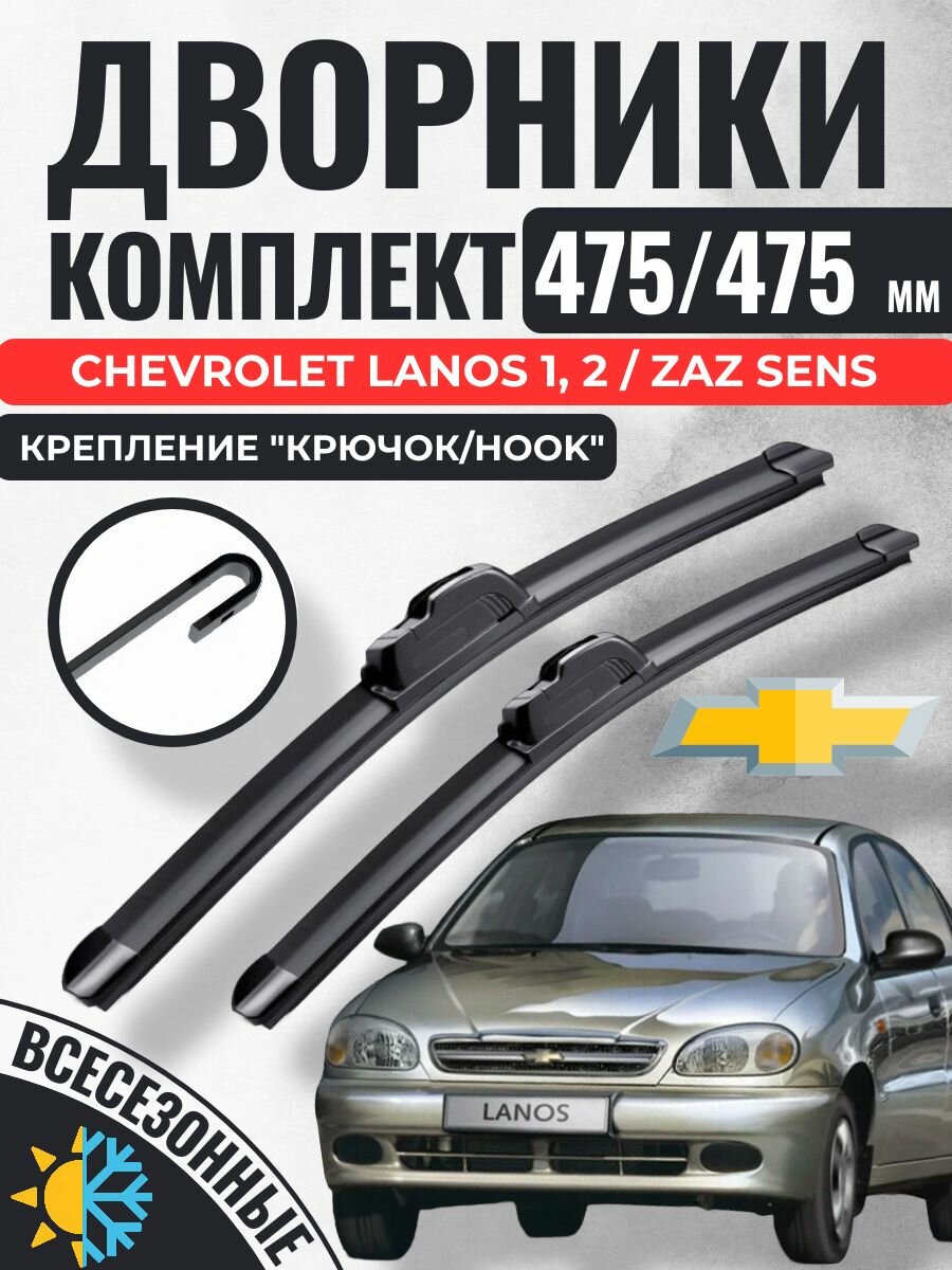 475 475 Щетки стеклоочистителя Chevrolet Lanos 1, 2 / ZAZ Sens / Дворники бескаркасные Шевроле Ланос Заз шанс