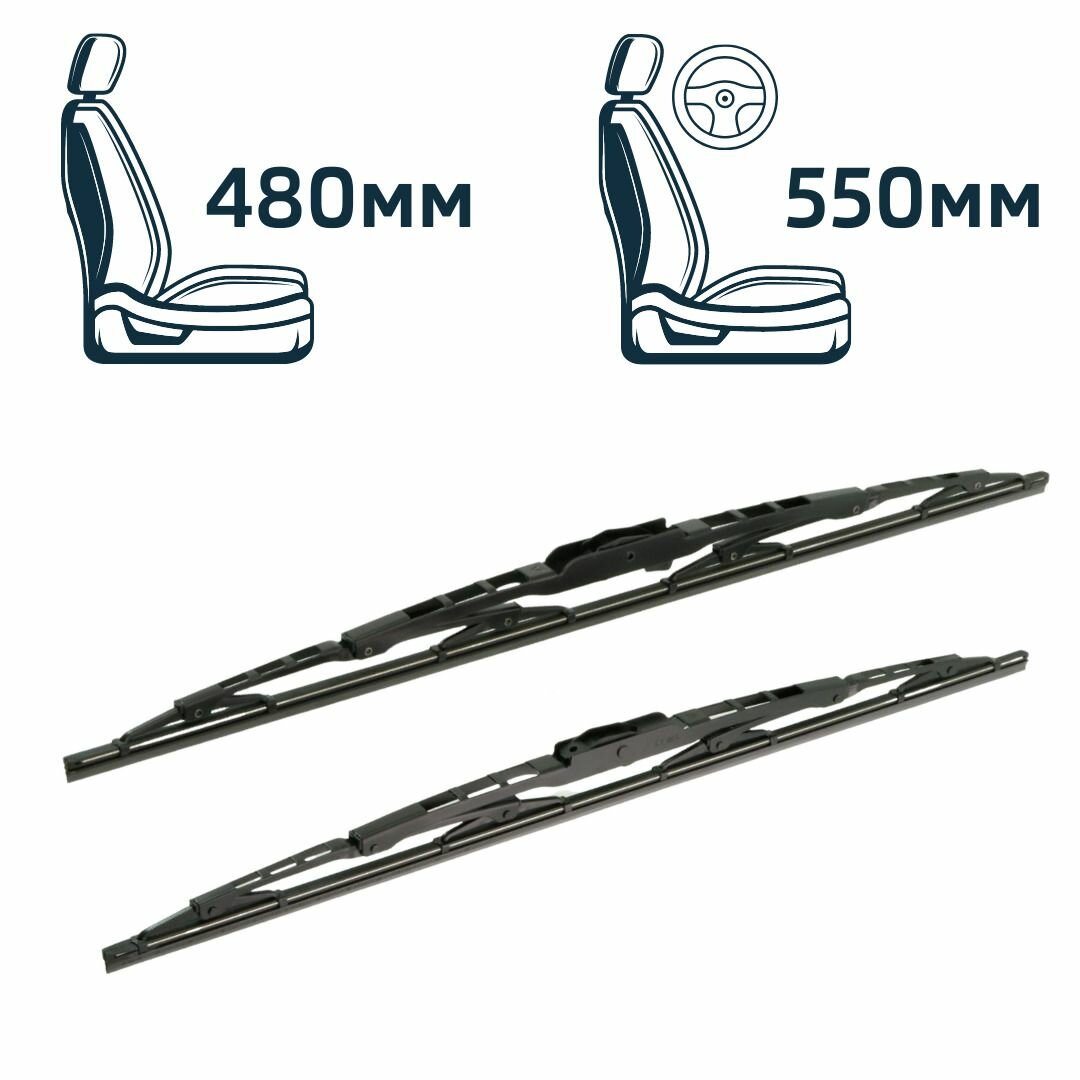 Дворники Mitsubishi Outlander (1) CU Митсубиси Аутлендер СУ 5 дв. 2002 2003 2004 2005 2006 2007 2008 2009 Щетки стеклоочистителя каркасные для автомобиля 550мм-480мм к-т 2шт. информация: