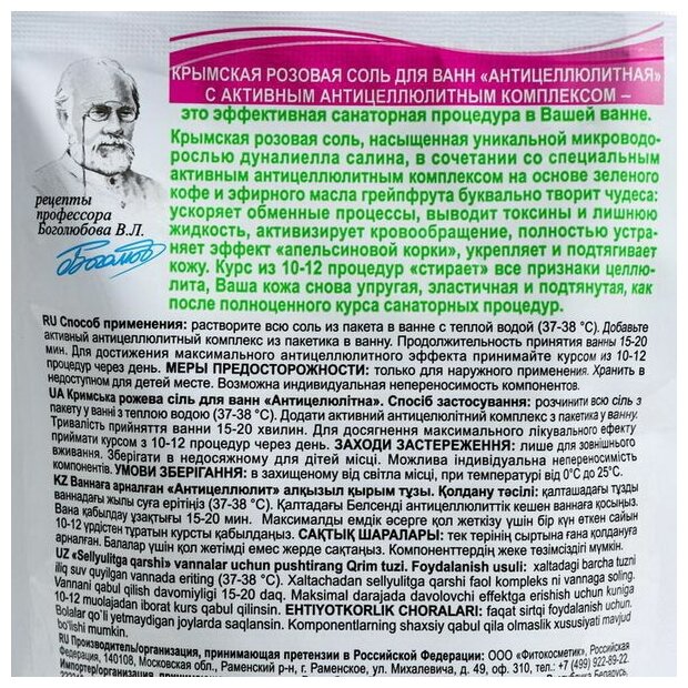Соль для ванн Крымская розовая "Антицеллюлитная" (500гр+30) информация: