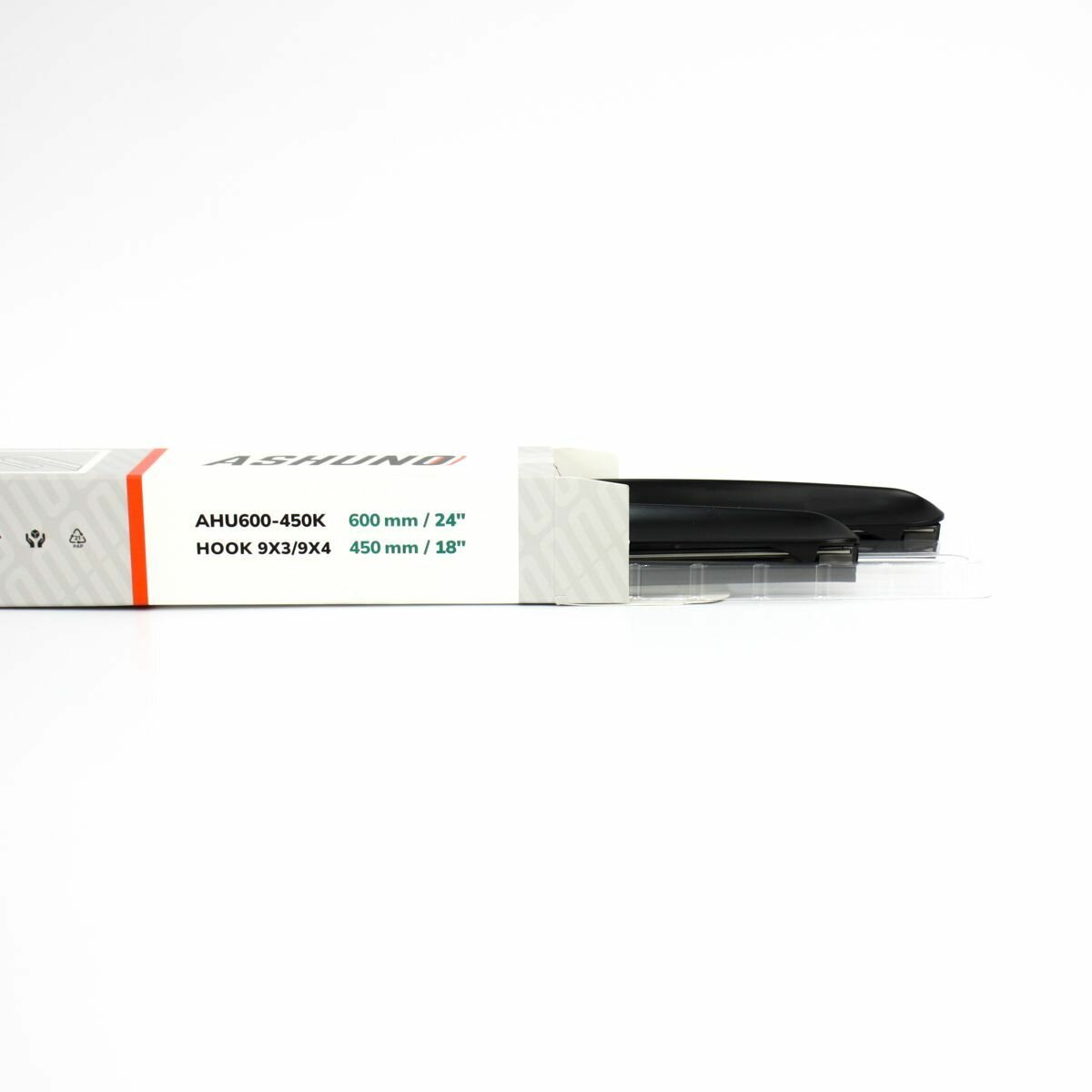 Щетки стеклоочистителя гибридные ASHUNO , комплект дворников 650 + 350 мм , крепление крючок 9х3 / Honda Fit Kia Ceed Suzuki SX4 Toyota Corolla