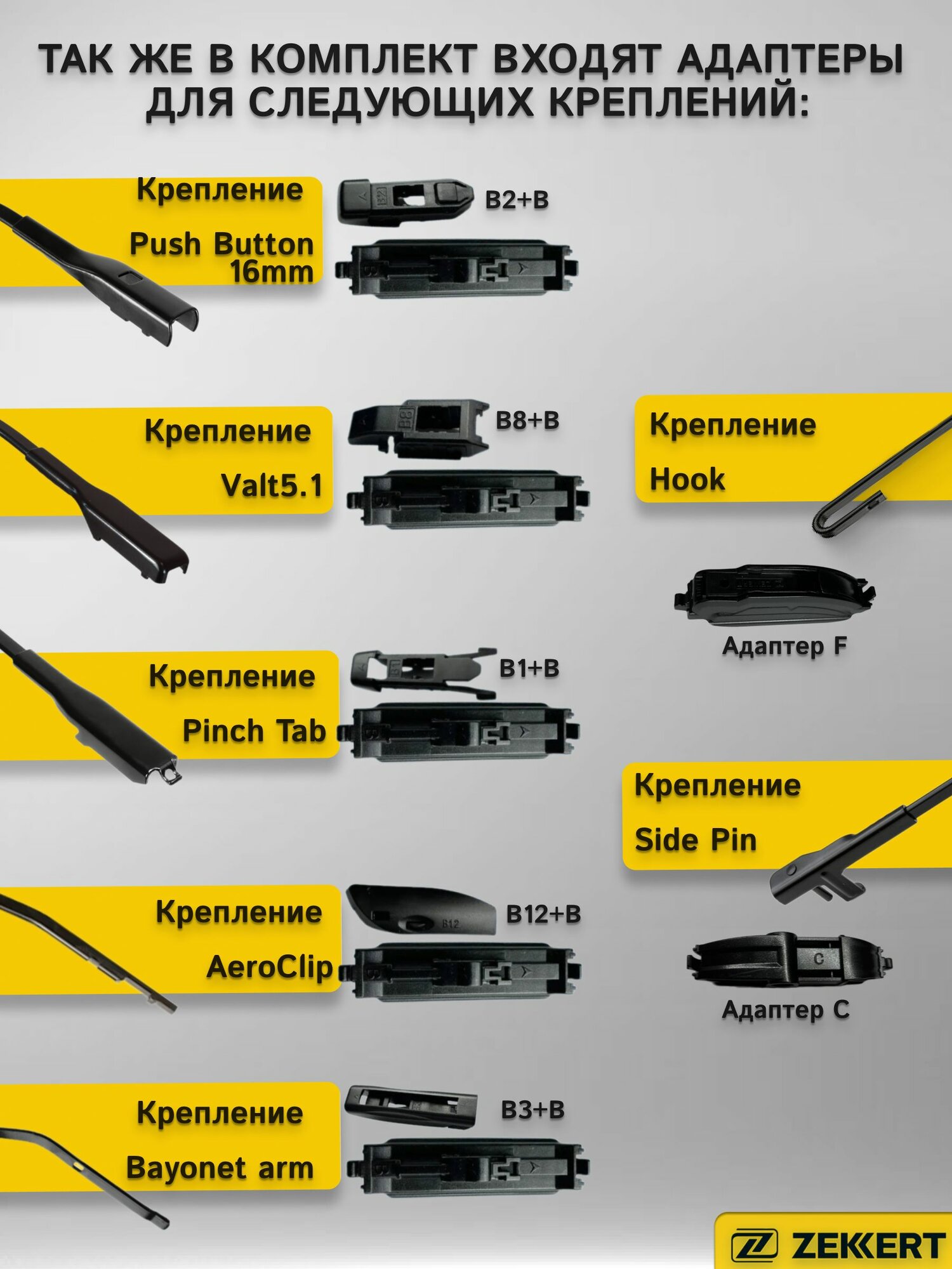 Щетка стеклоочистителя гибридная Zekkert 21"/530 мм (A/B1/B2/B3/B4/C)