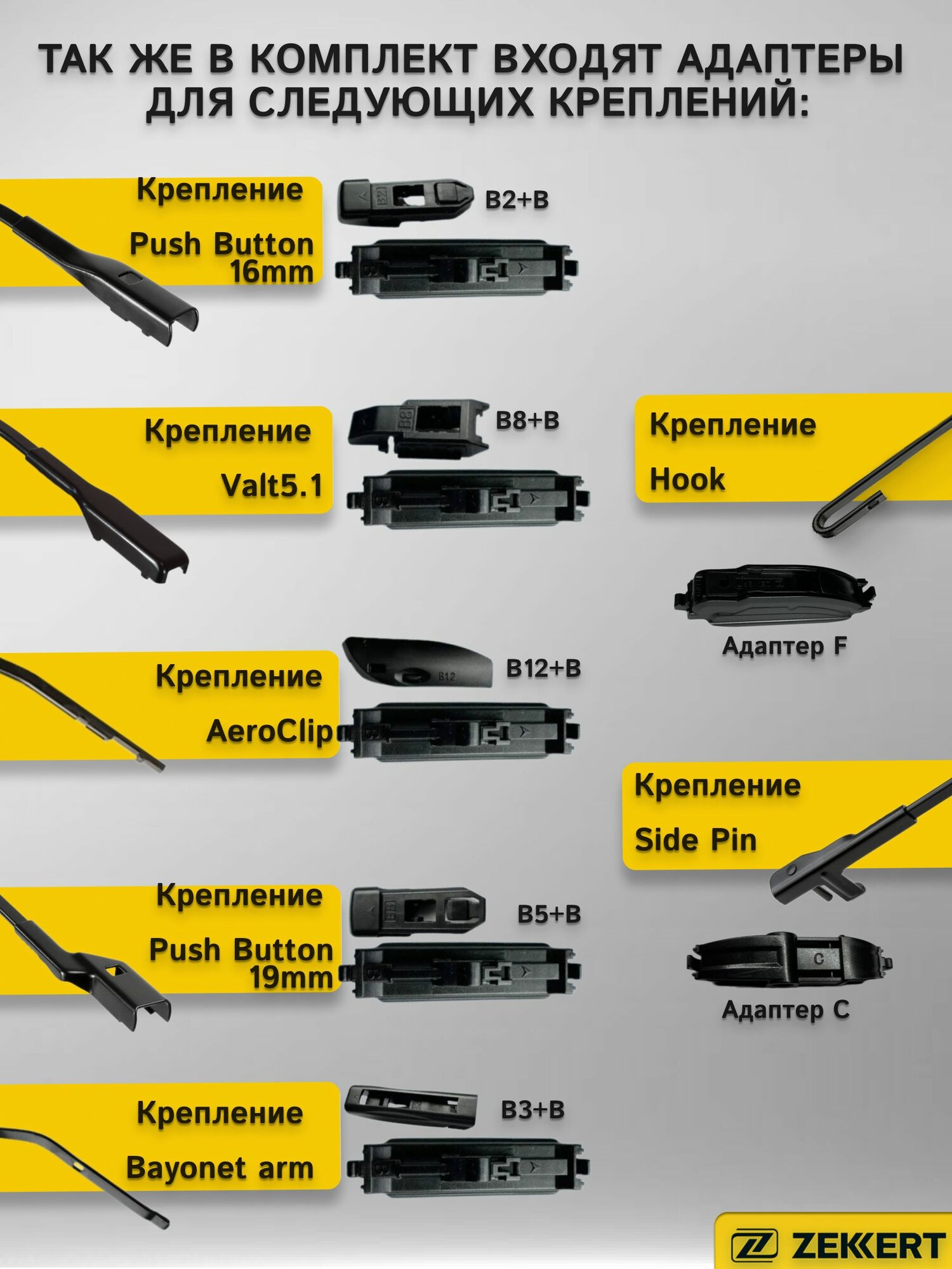 Щетка стеклоочистителя гибридная Zekkert 21"/530 мм (A/B1/B2/B3/B4/C)