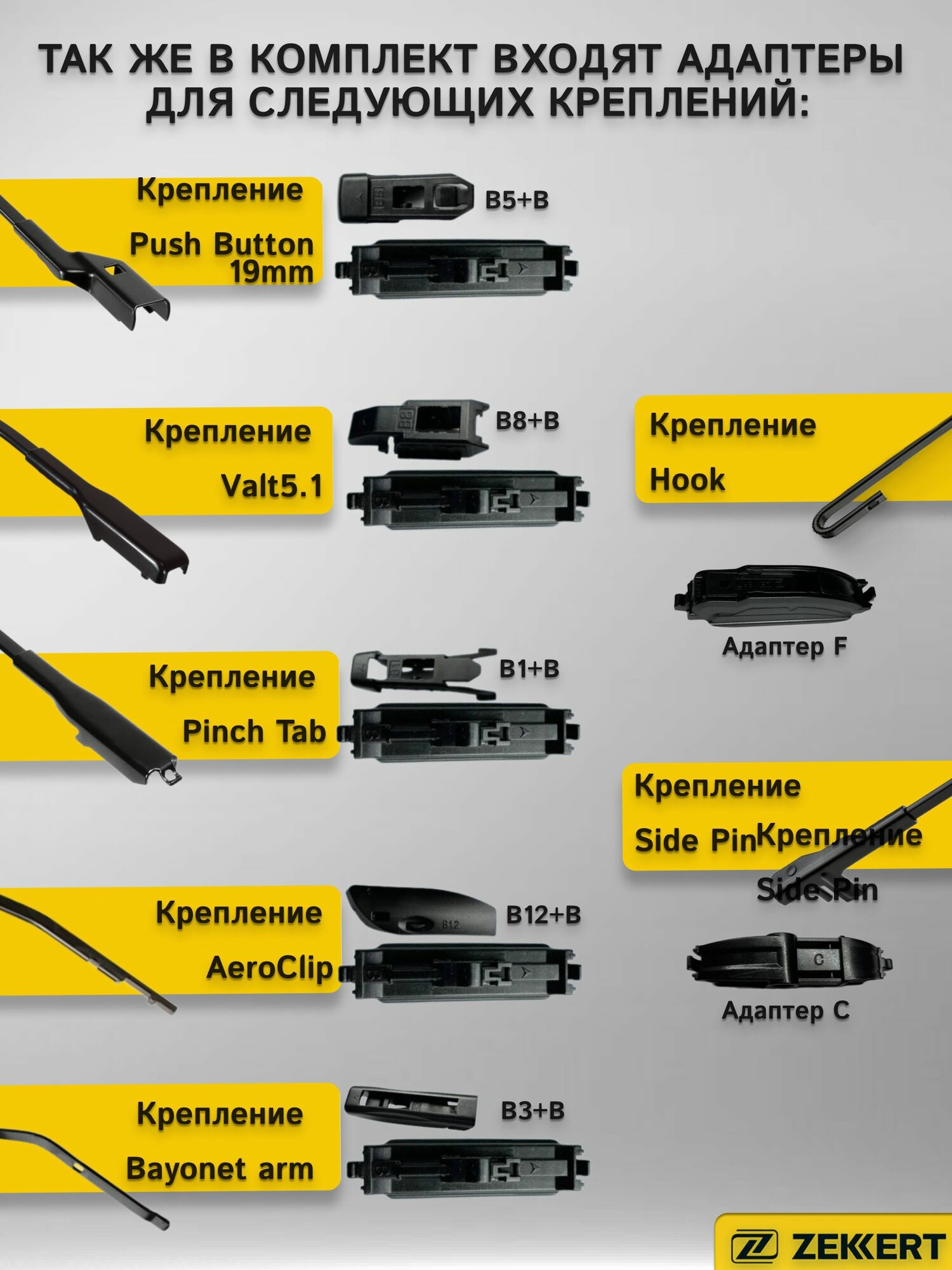 Щетка стеклоочистителя гибридная Zekkert 21"/530 мм (A/B1/B2/B3/B4/C)
