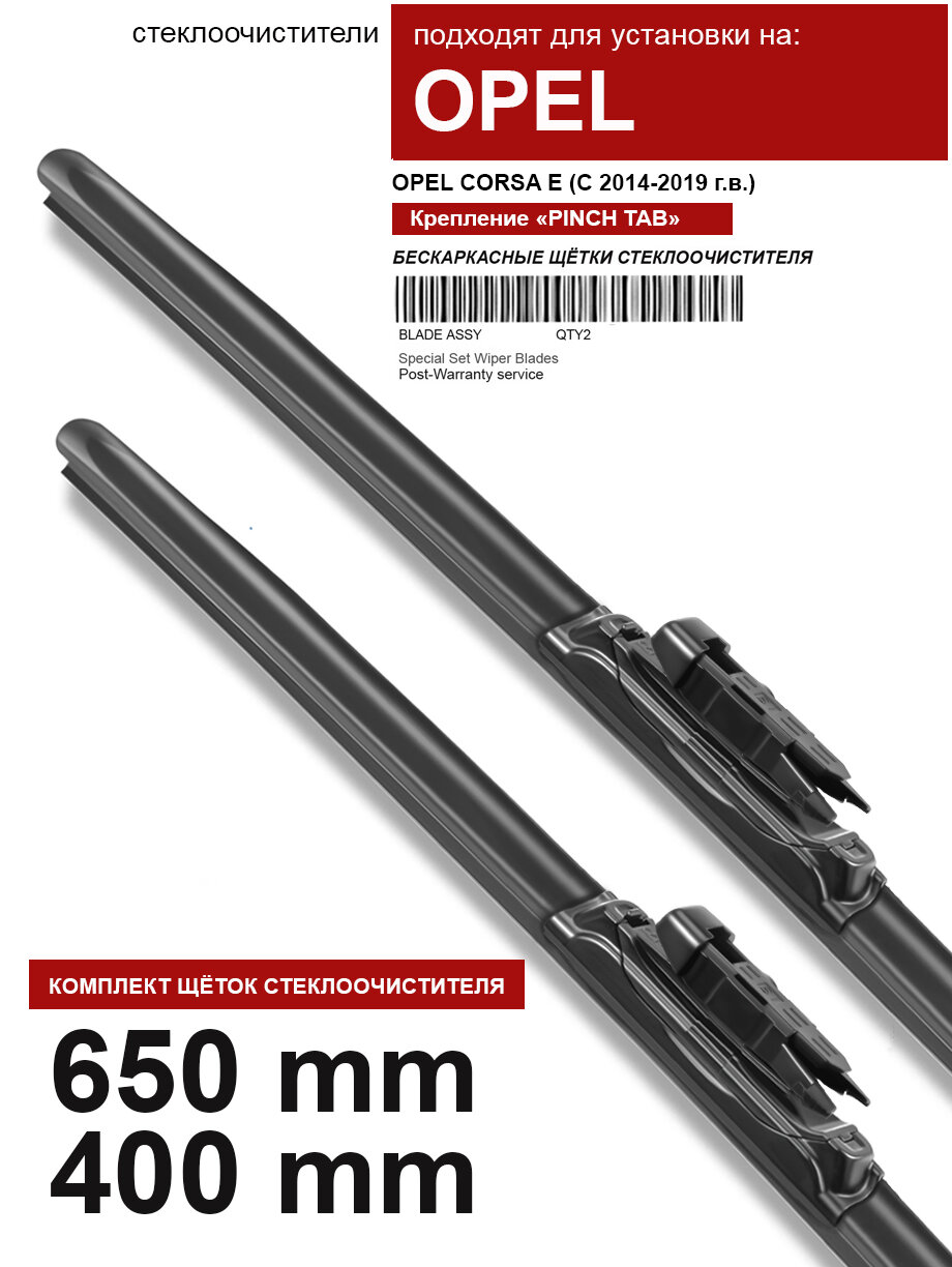 Щетки стеклоочистителя для Opel Corsa E - бескаркасные дворники Опель Корса Е 650 400 мм комплект. информация: