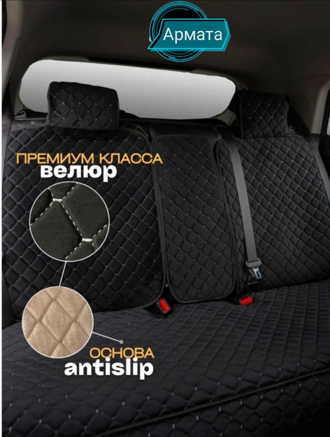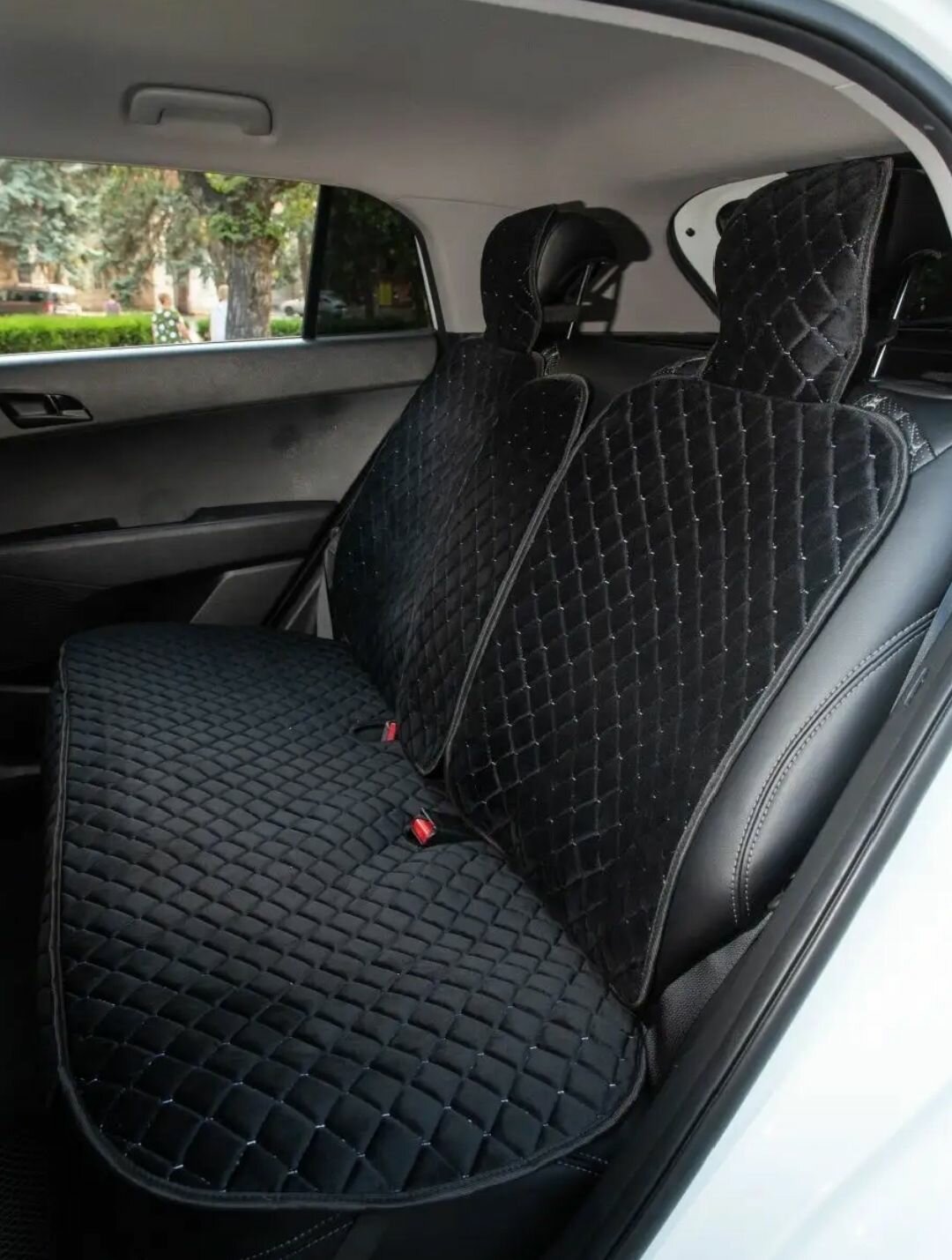 Отзывы на Накидки на задние сиденья автомобиля / Велюр ромб черная белая строчка /Чехлы для автомобильных сидений универсальные/