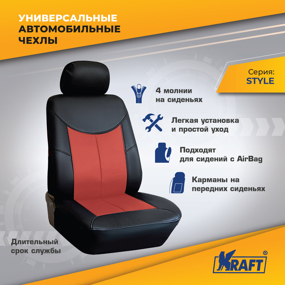 Чехлы универсальные на автомобильные сиденья KRAFT, комплект "STYLE", черно-красные KT 835628